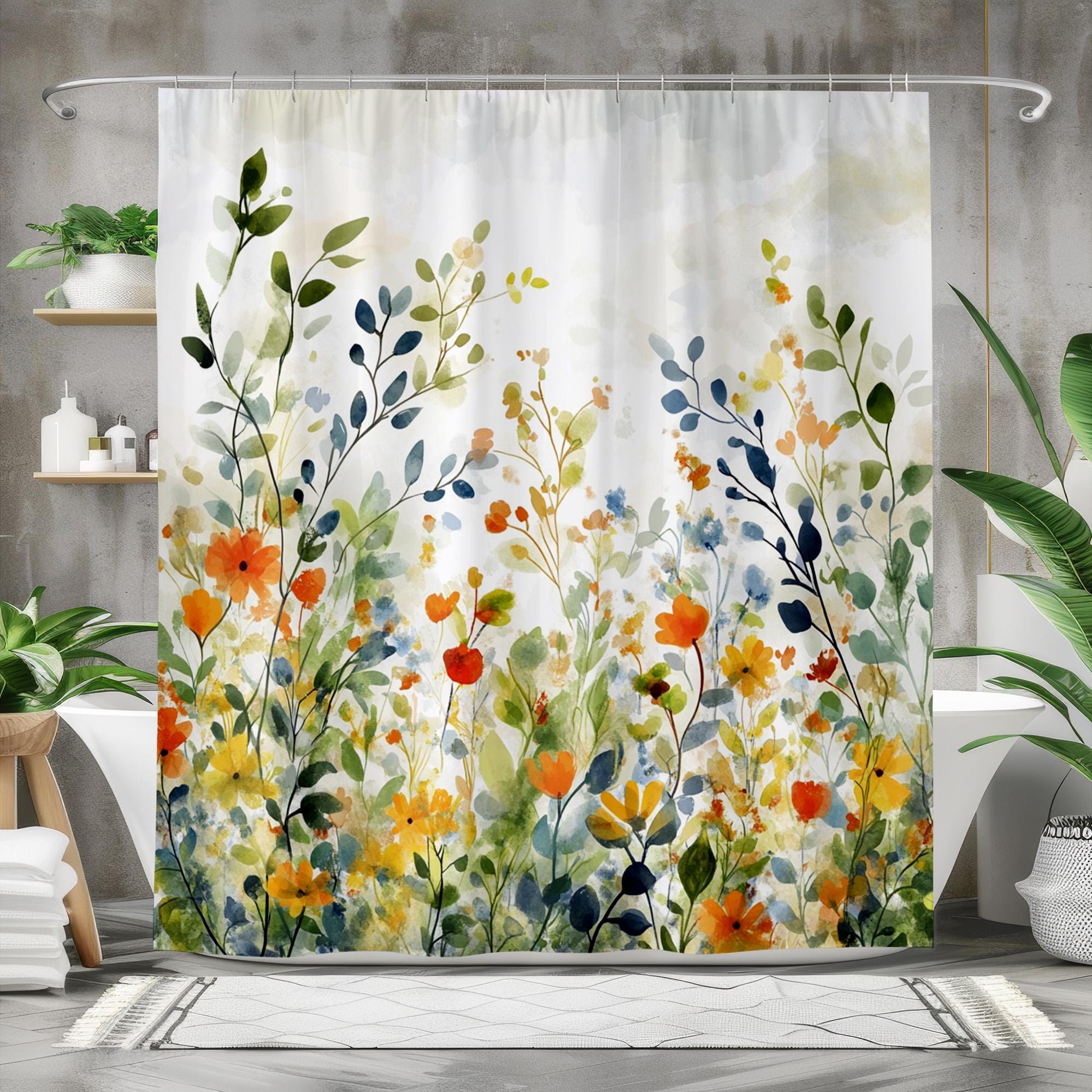Floral Watercolor Shower Curtain, Botanical Bathroom Decor, Wildflo...