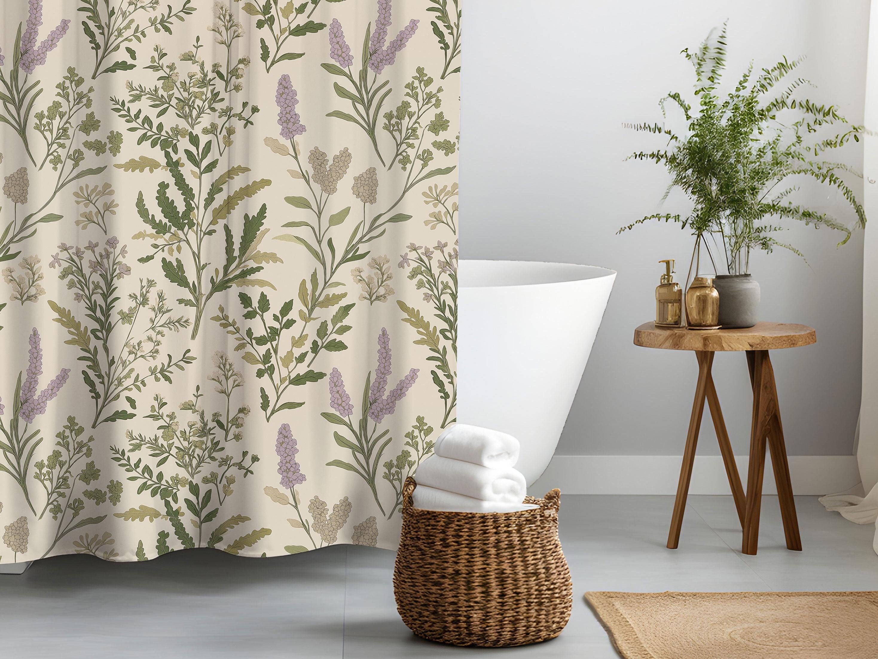 Botanical Herbs Shower Curtain | Serene Herbalist Garden Plants | F...