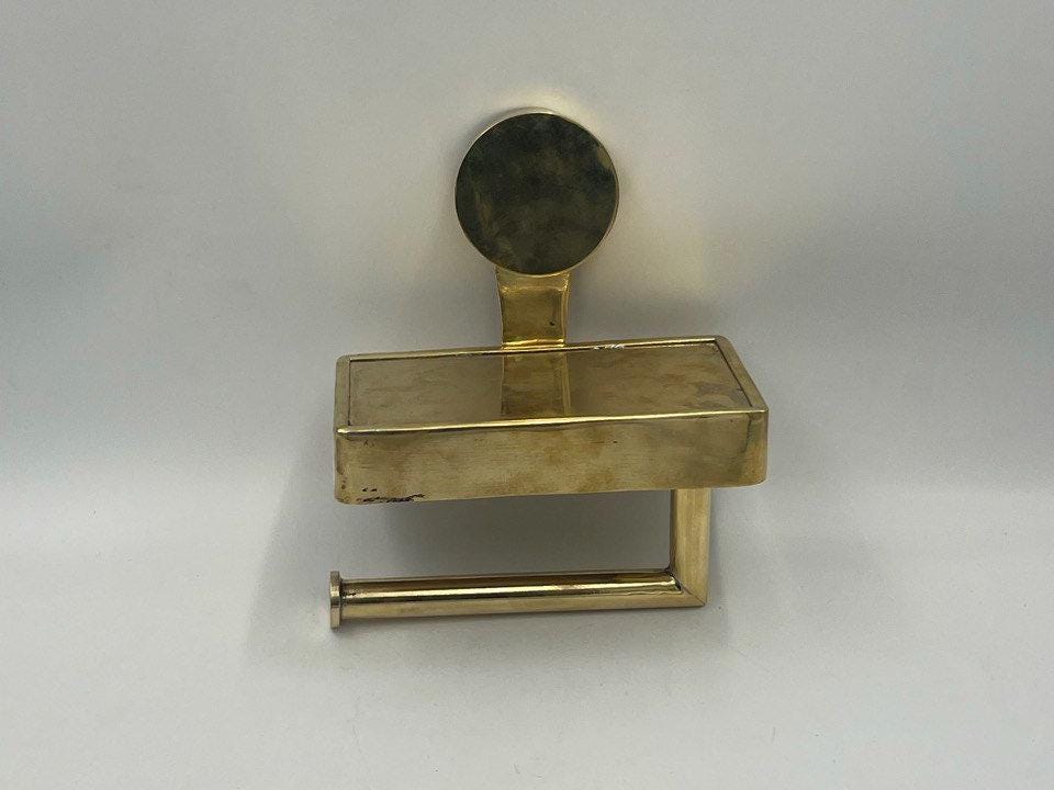 Brass Toilet Paper Holder With Shelf, Handmade Unlacquered Brass Ph...