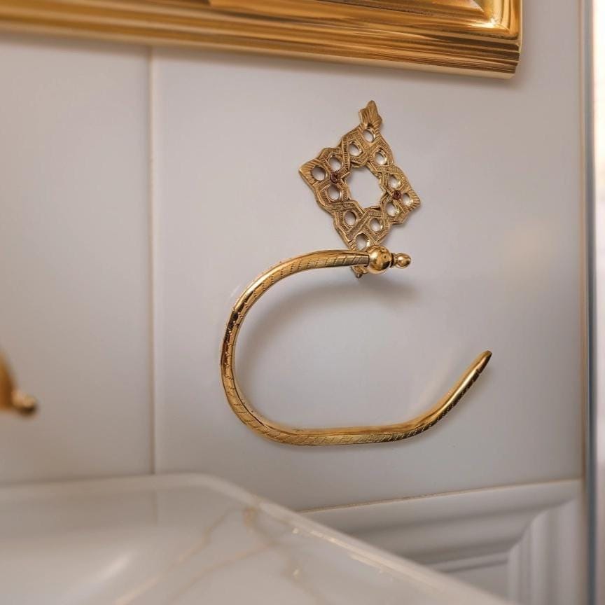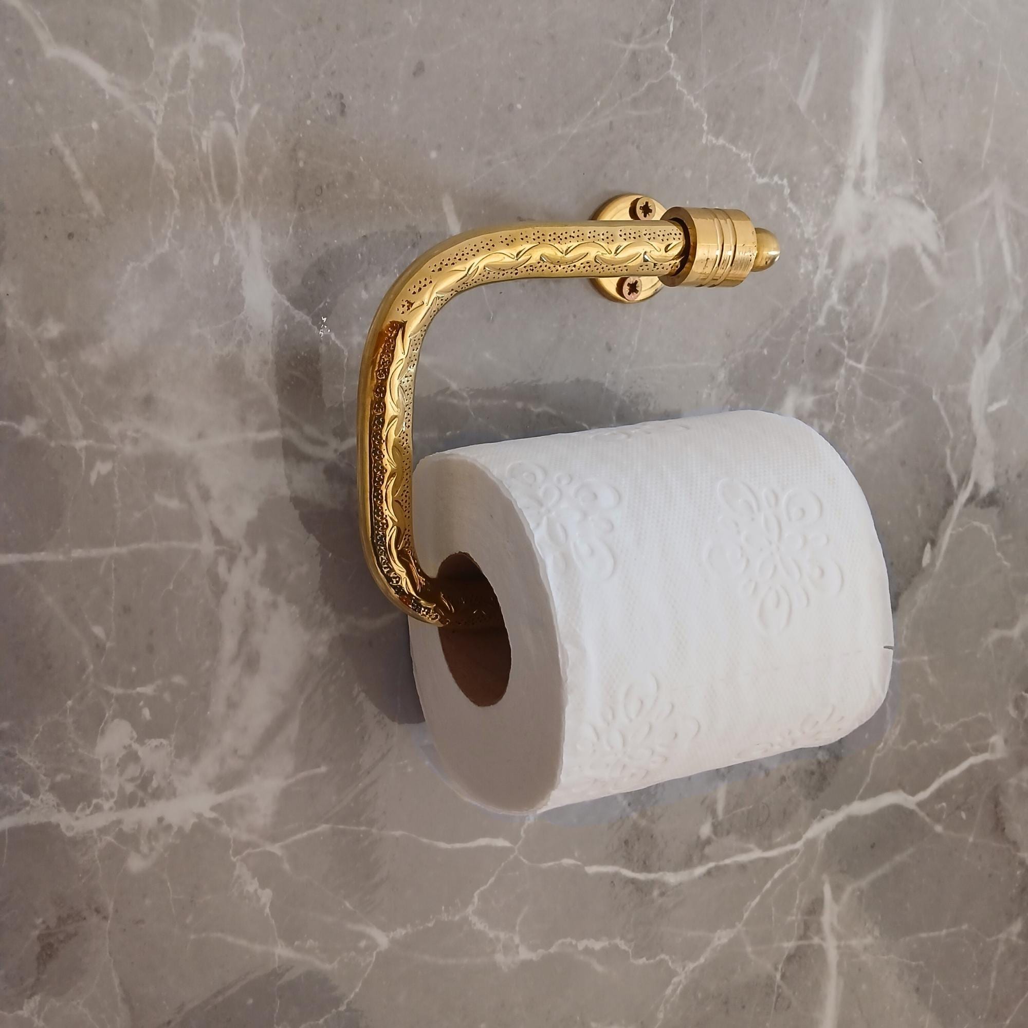 Moroccan-Style Engraved Solid Brass Toilet Paper, Wall-Mounted Towe...