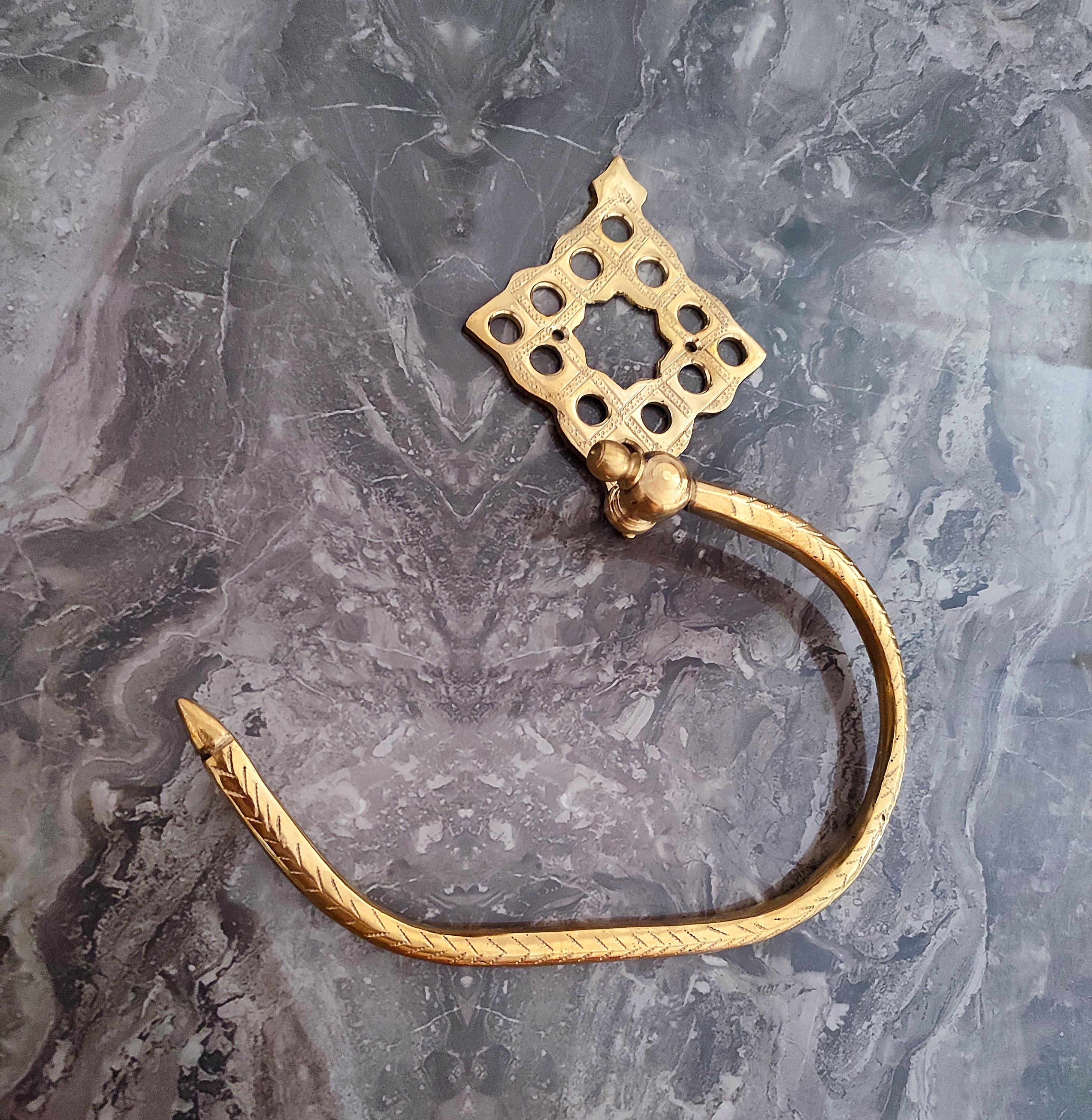 "Welcome To Store \"RachaCraftMorocco\" Handcrafted Moroccan Brass Towel Holder , Eng...