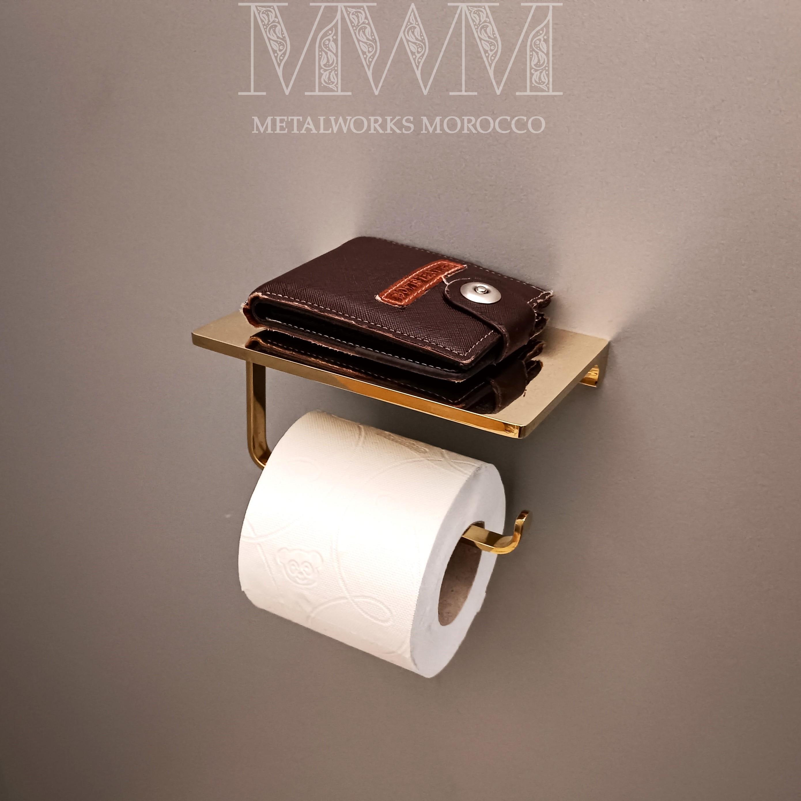 Brass Toilet Paper Holder With Shelf, Handmade Unlacquered Brass Ph...