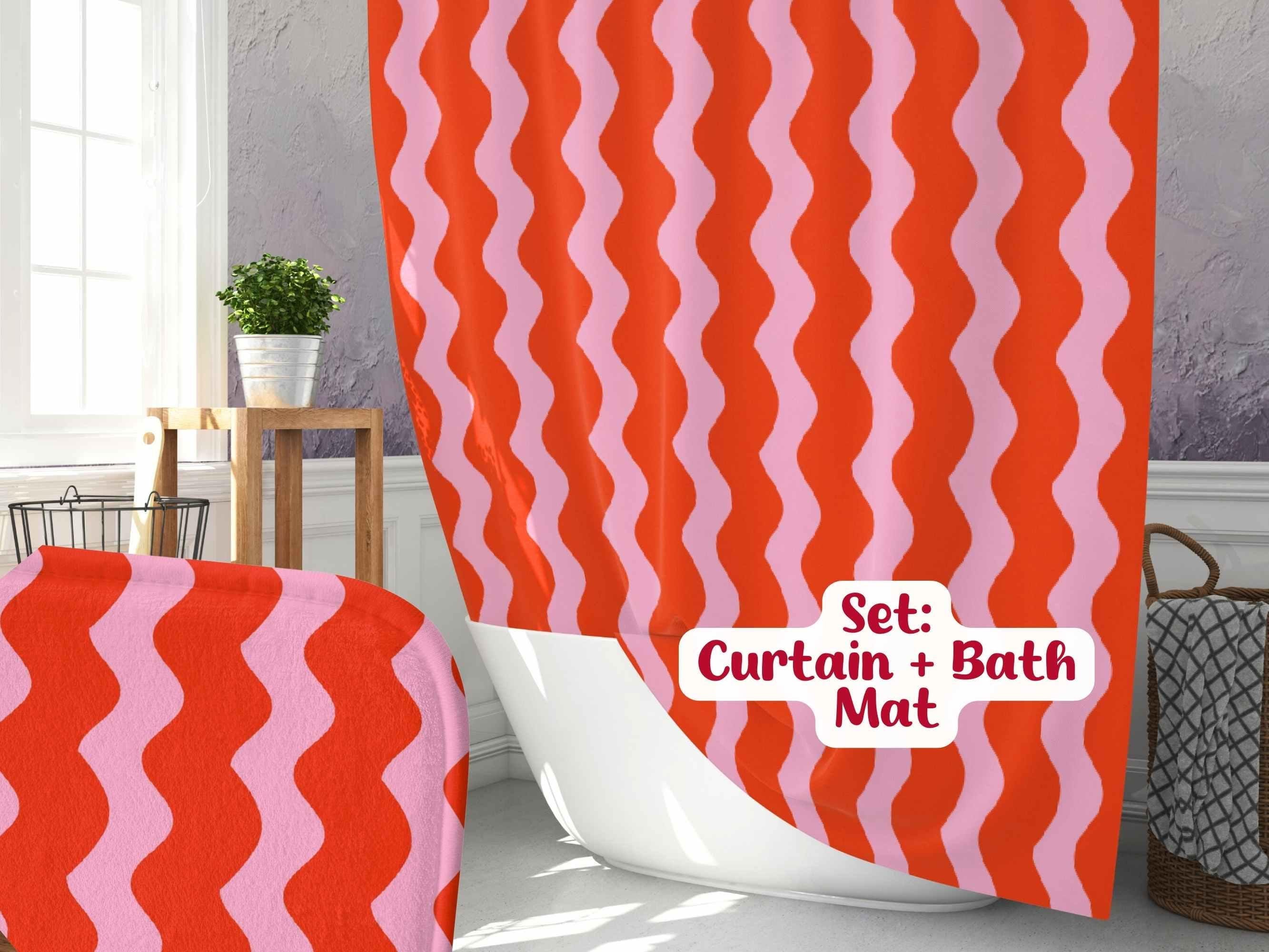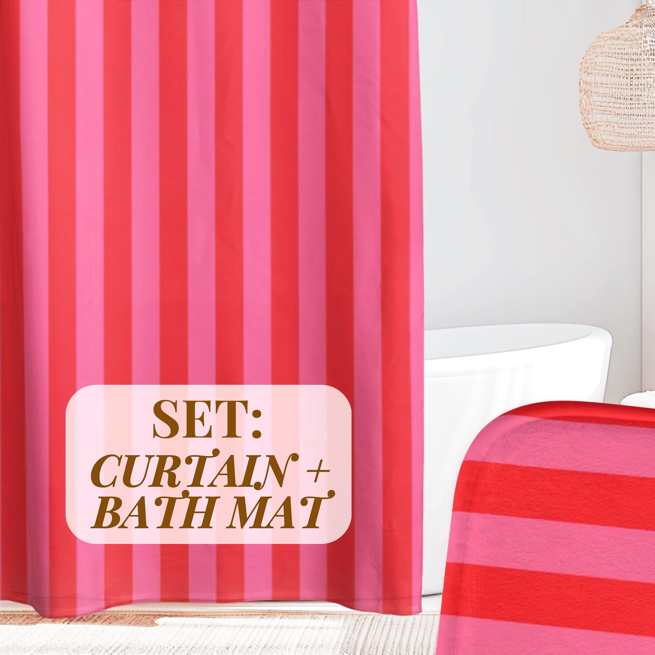 Red Shower Curtain Stripe Pink Classic Shower Curtain Maximalist Ba...