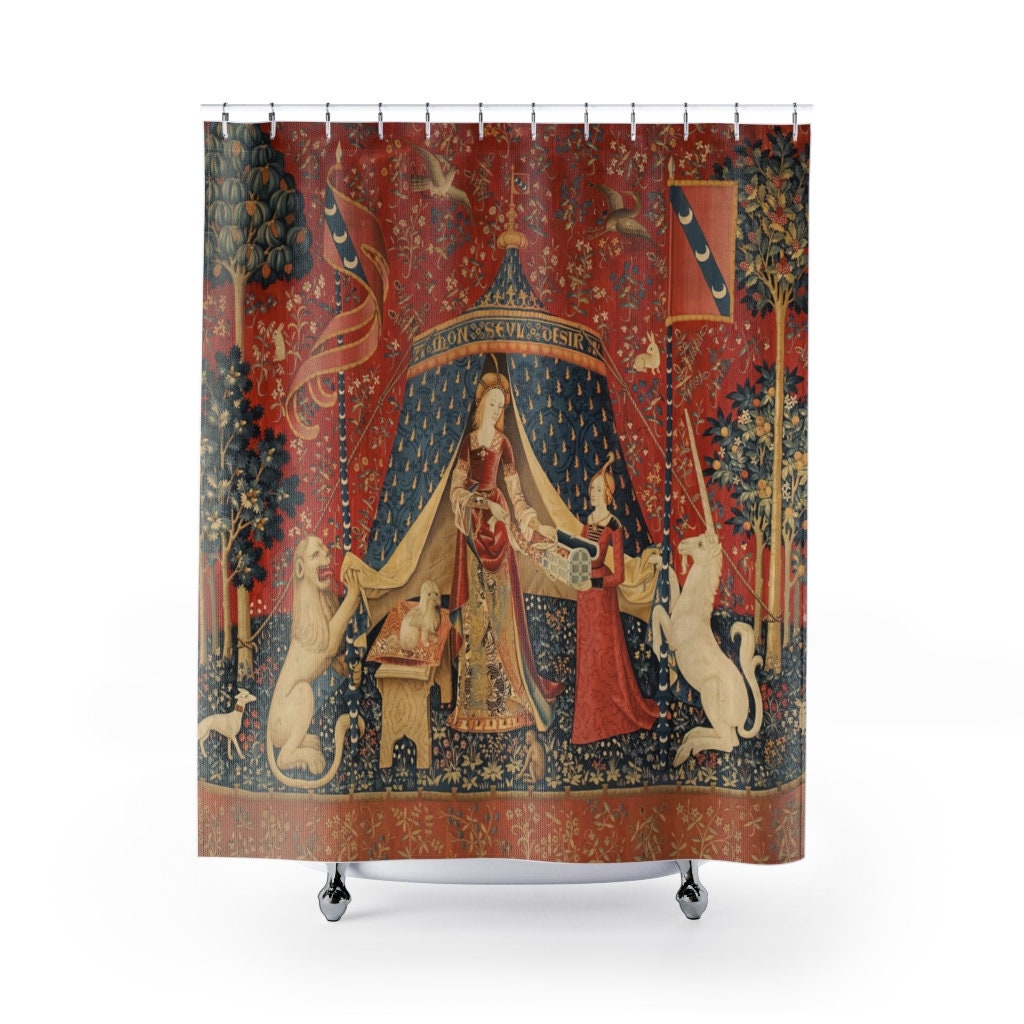 Medieval Shower Curtain, Red Shower Curtain, Lady and the Unicorn, ...