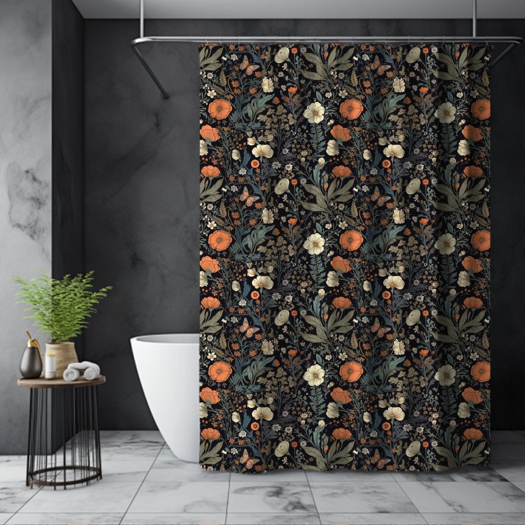 "Dark Moody Cottagecore Butterfly Floral Botanical Fabric Shower Curtain. *Sizing and Colors -S...