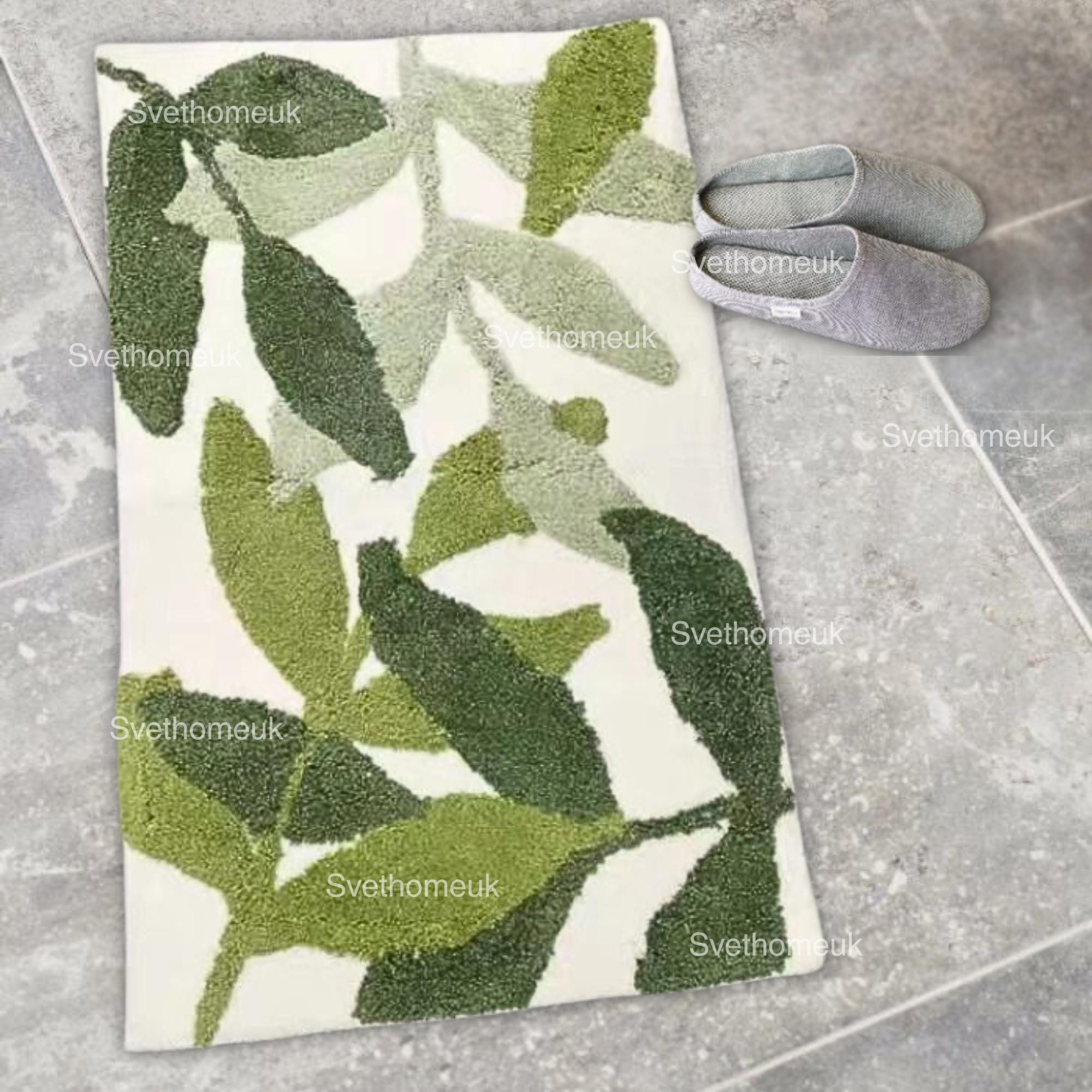 Floral bath mat Green Leaves Flocking Bath Mat Non-slip Absorbent M...