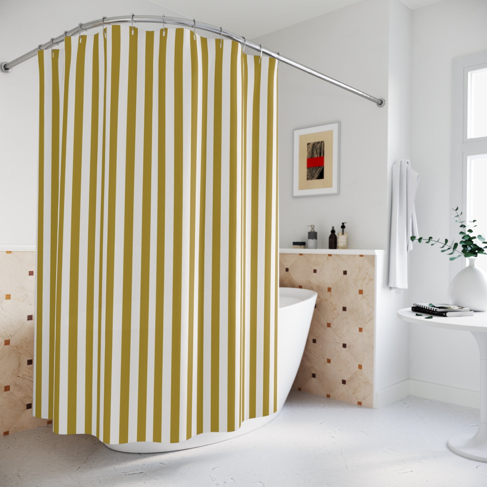 "Transform your bathroom decor with this striped shower curtain, the perfect bath curtain for y...