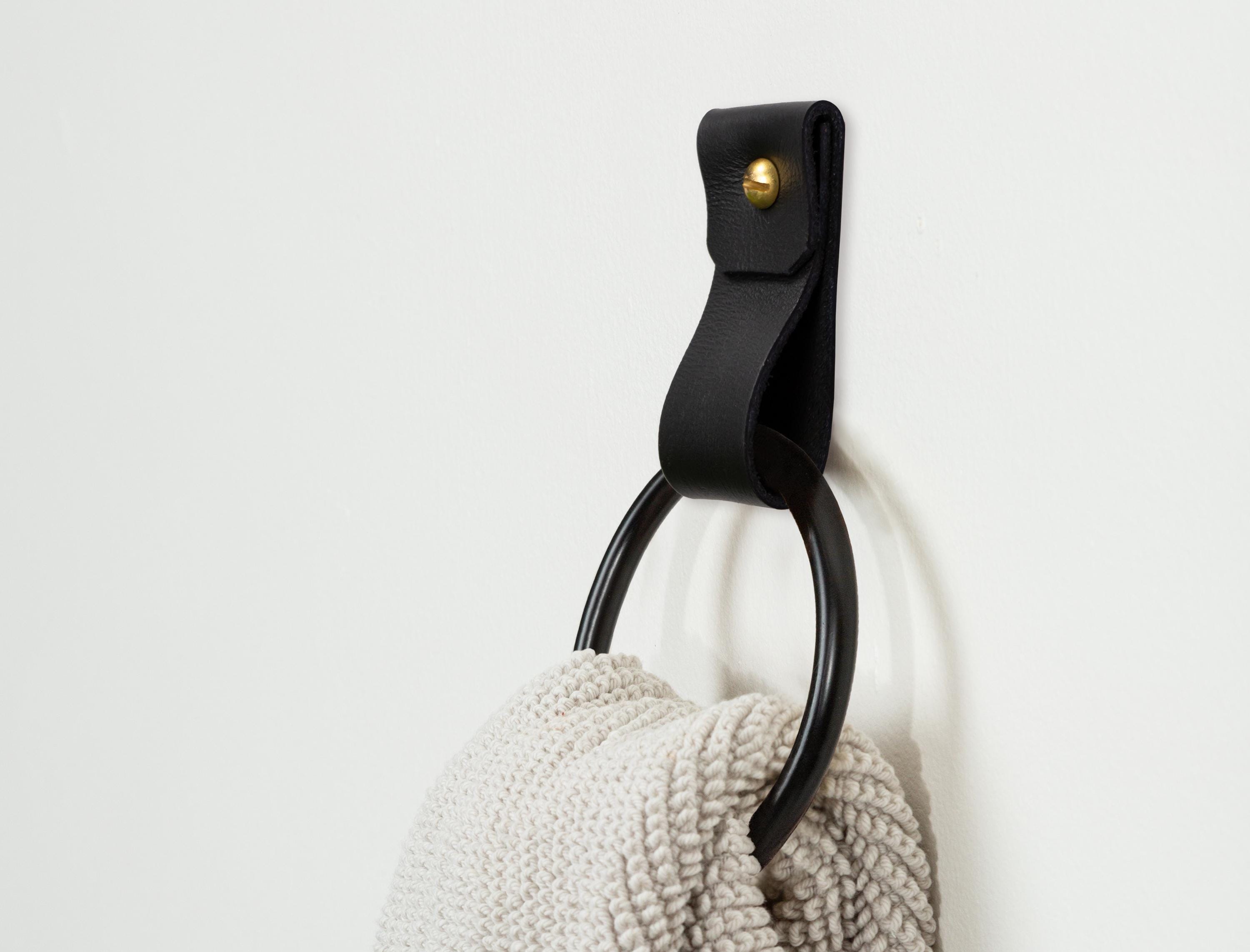 Small Round End - leather strap hanger for bath towel holder leathe...