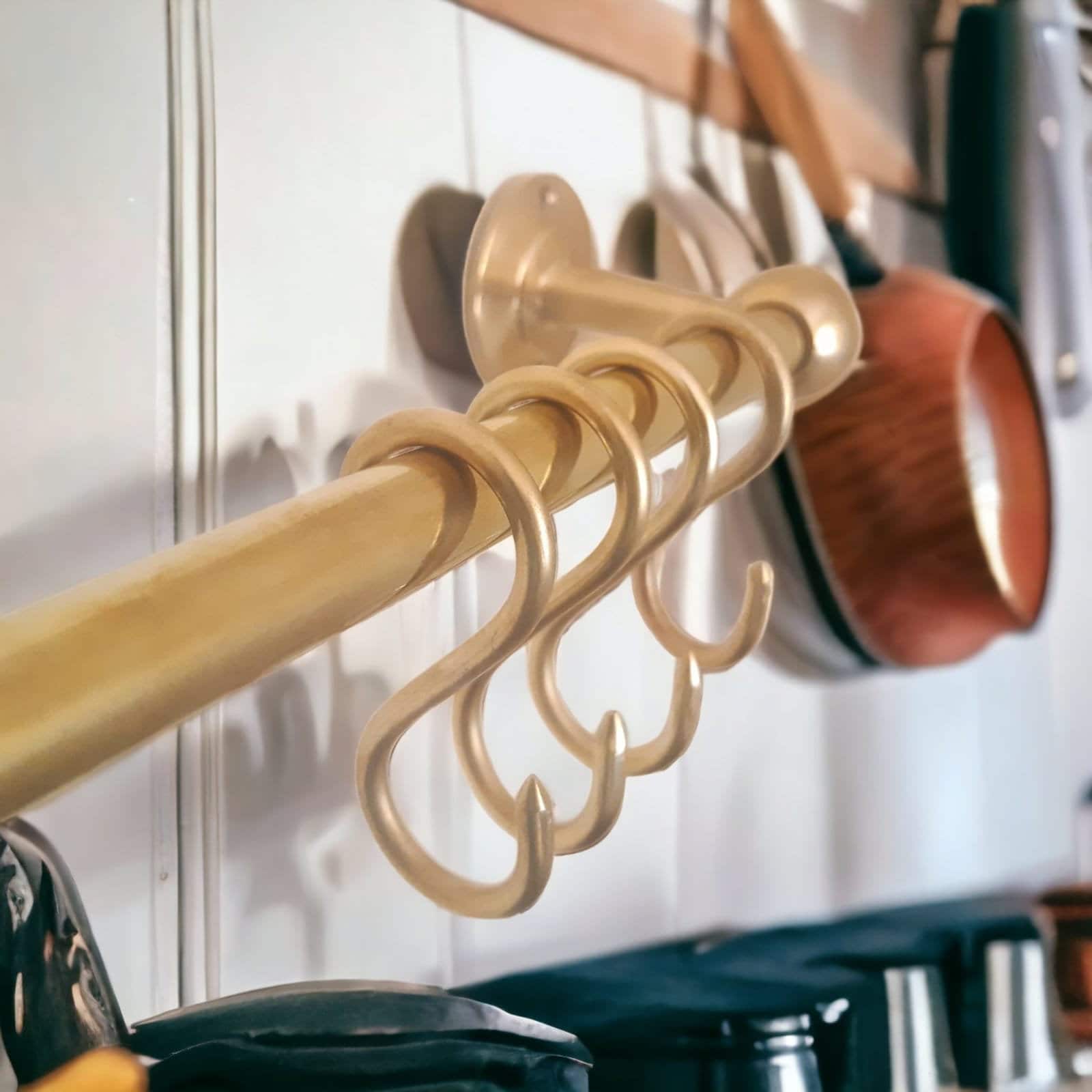 Copper Pot Rack with Brass Finish, Handmade Kitchen Pot Rail with S Hooks, Wall Mounted Pan Hanger, ...
