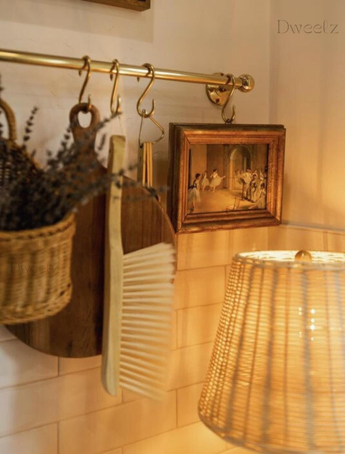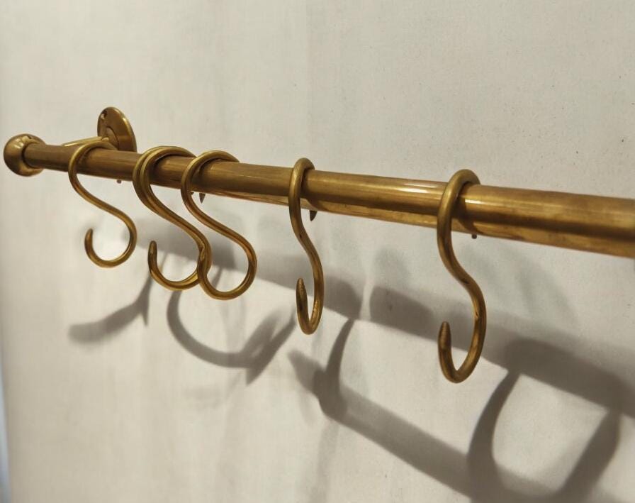 Unlacquered solid brass hanging pot and pan, brass hanging hook, kitchen hanging Rail, hanging hooks...
