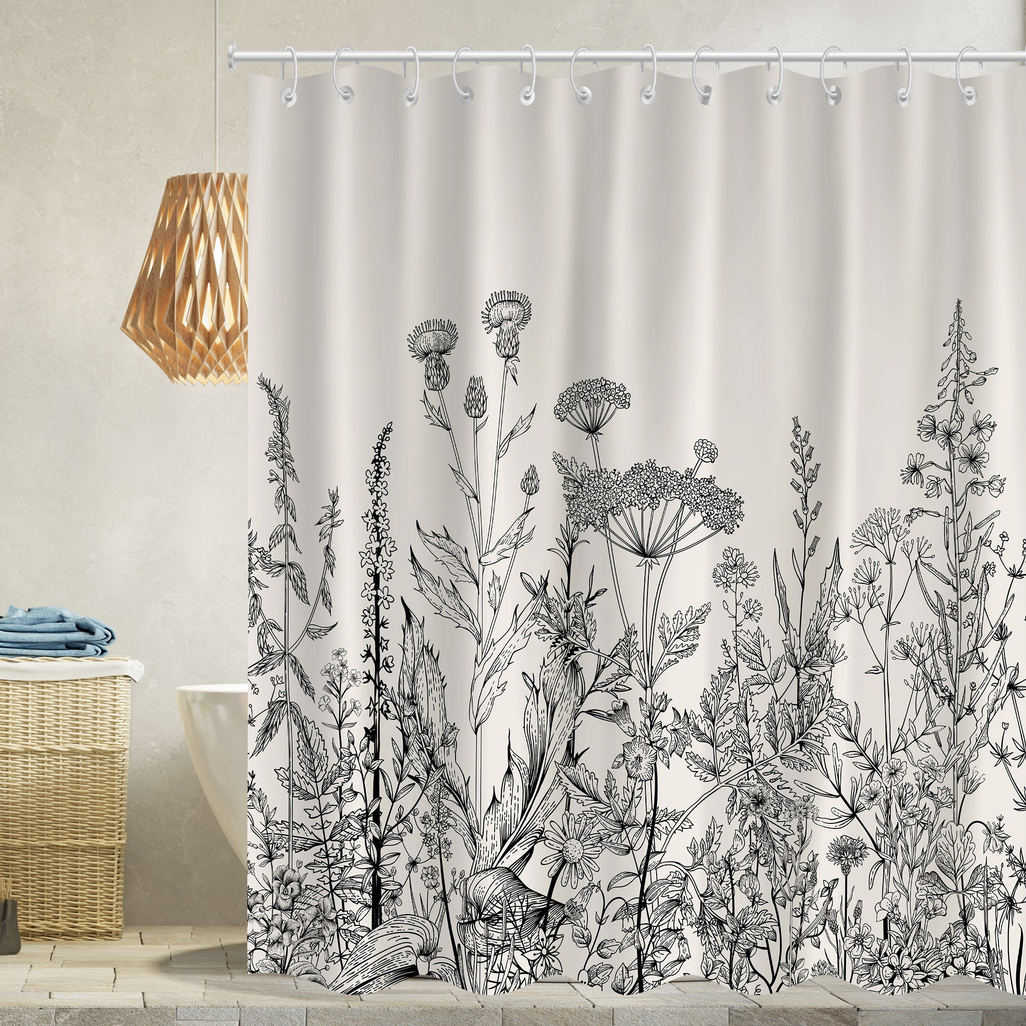 Wildflowers shower curtain Floral Border Herbal shower curtains pla...