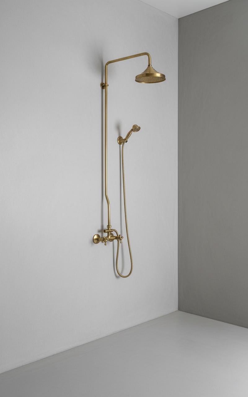 "Bring timeless character to your bathroom with this vintage-inspired unlacquered brass shower ...