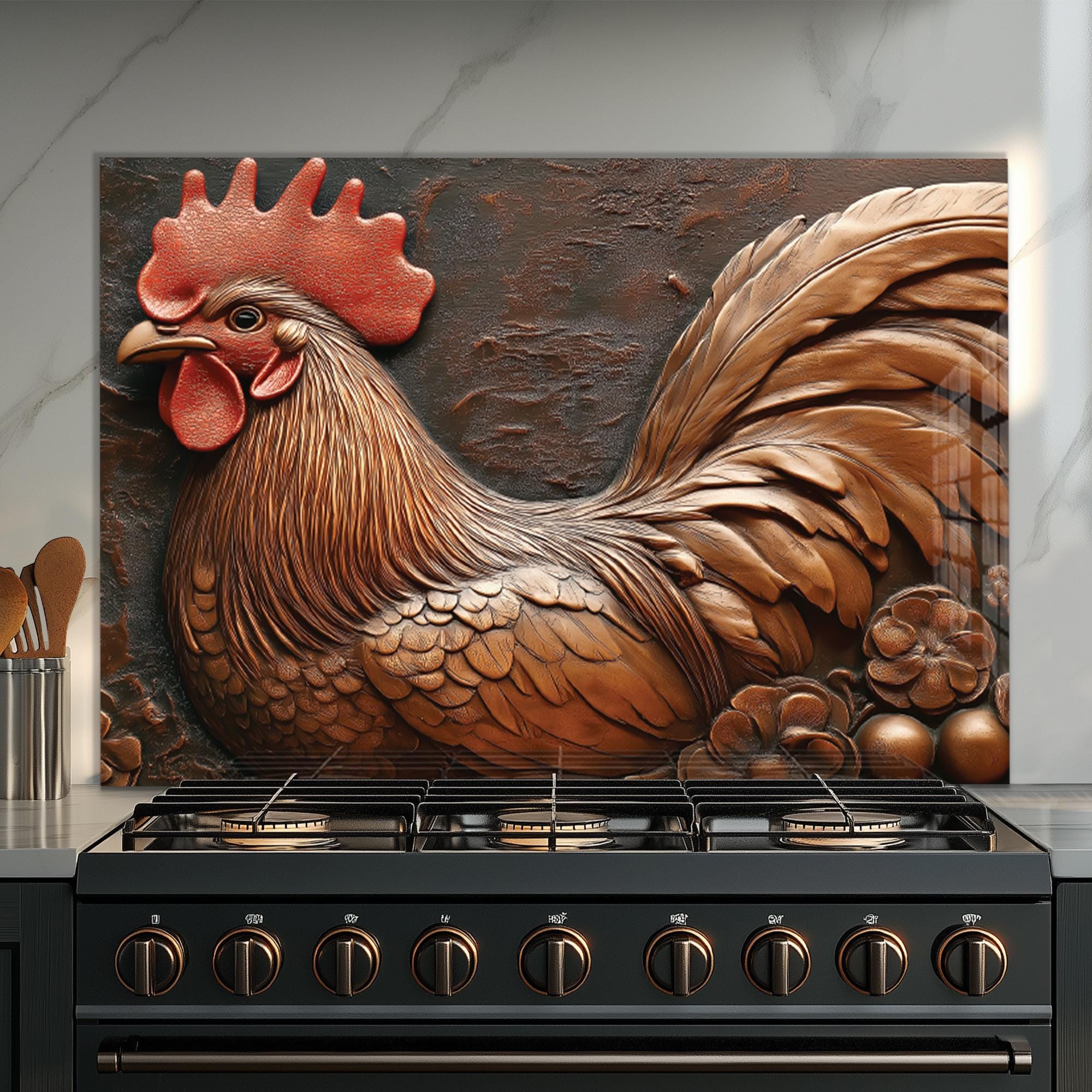 • Tempered Glass Cockerel Splashback, Kitchen Glass Backsplash, Stove...
