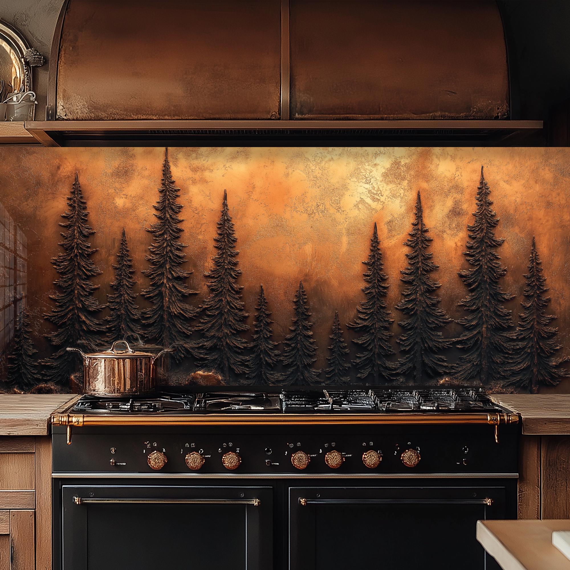 • Copper Pine Tree Glass Backsplash, Stove Back Top Cover, Kitchen Si...