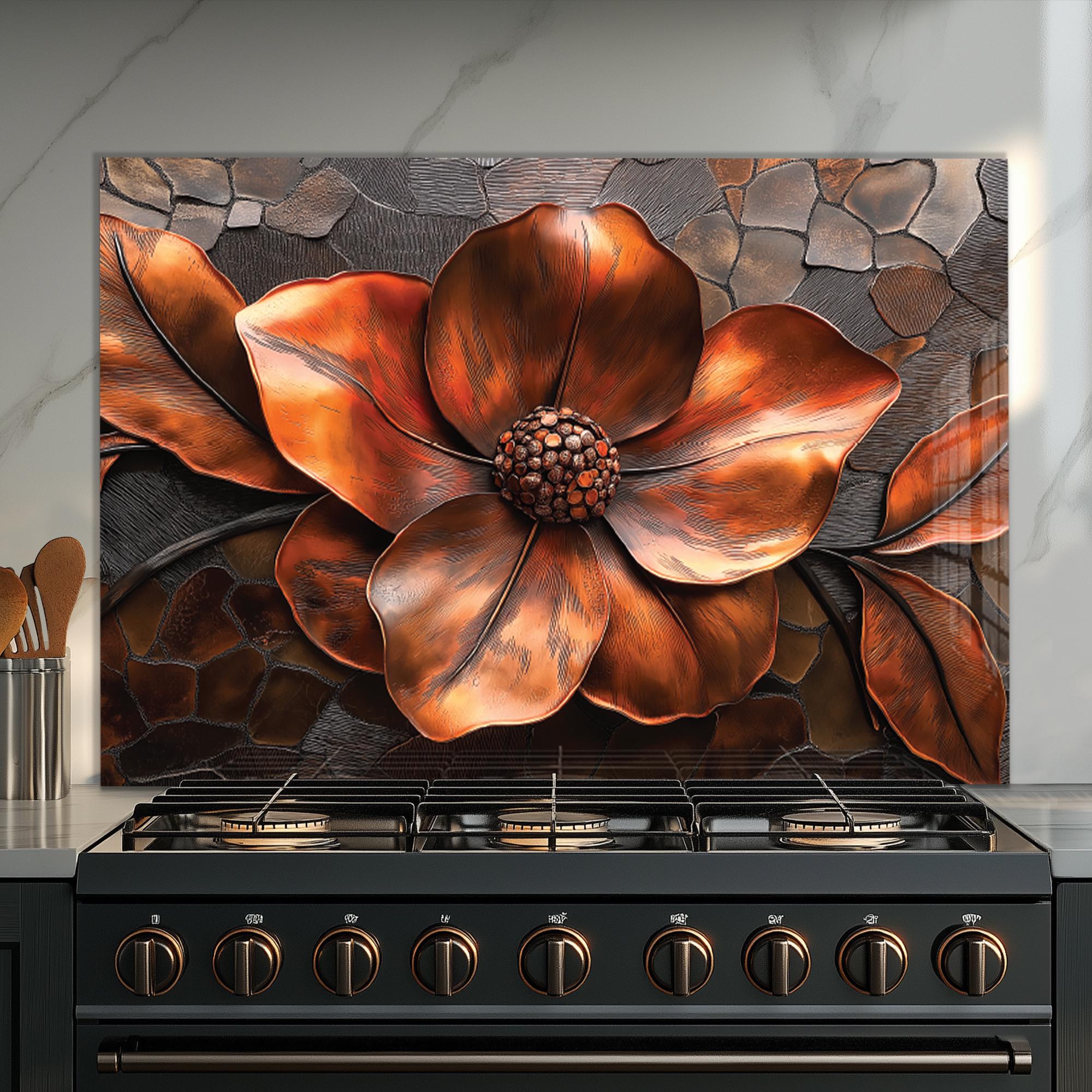 • Tempered Glass Flowers Splashback, Kitchen Glass Backsplash, Stove ...