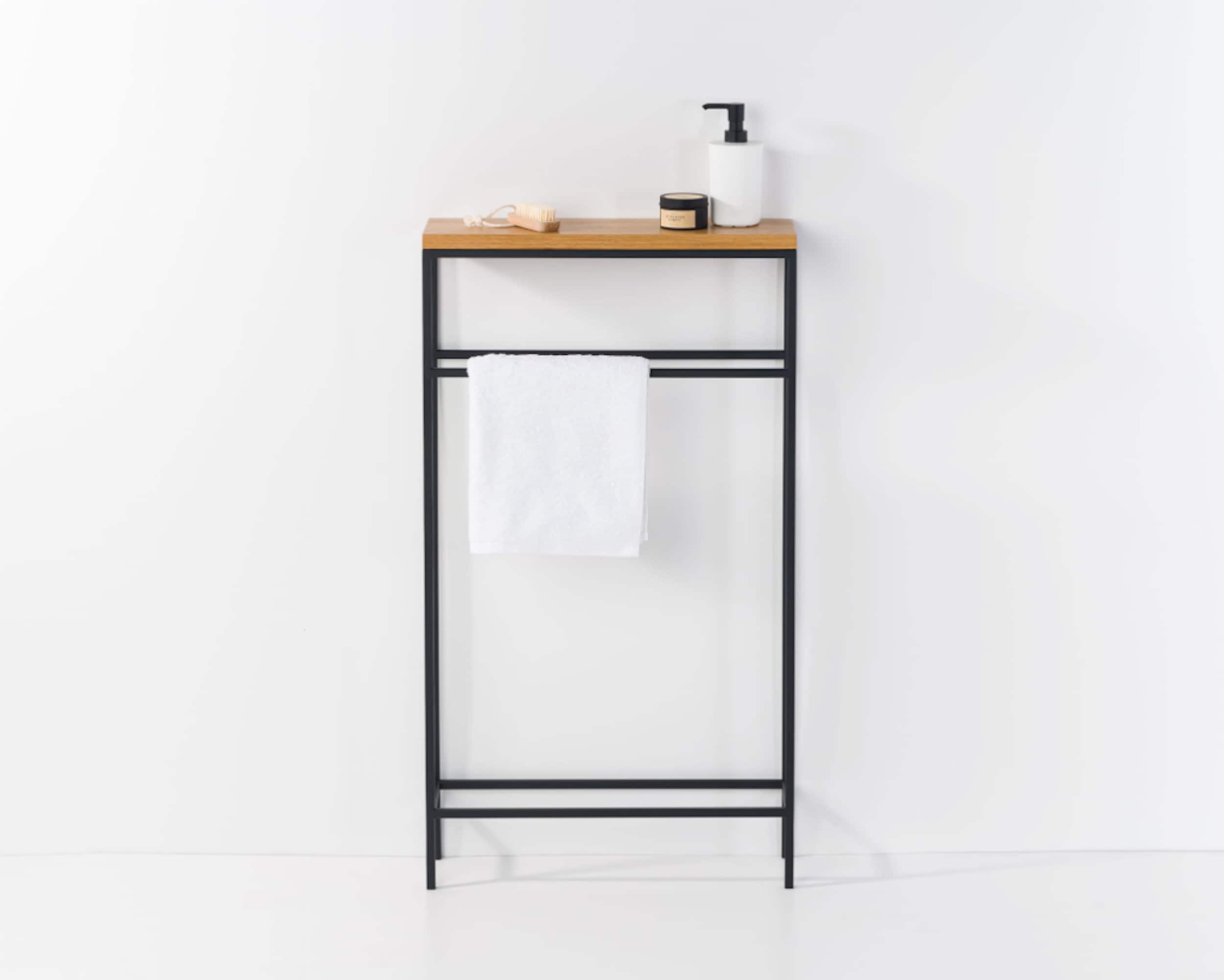 NOA Metal and Timber Towel Holder | Stylish Freestanding Rack | Mod...