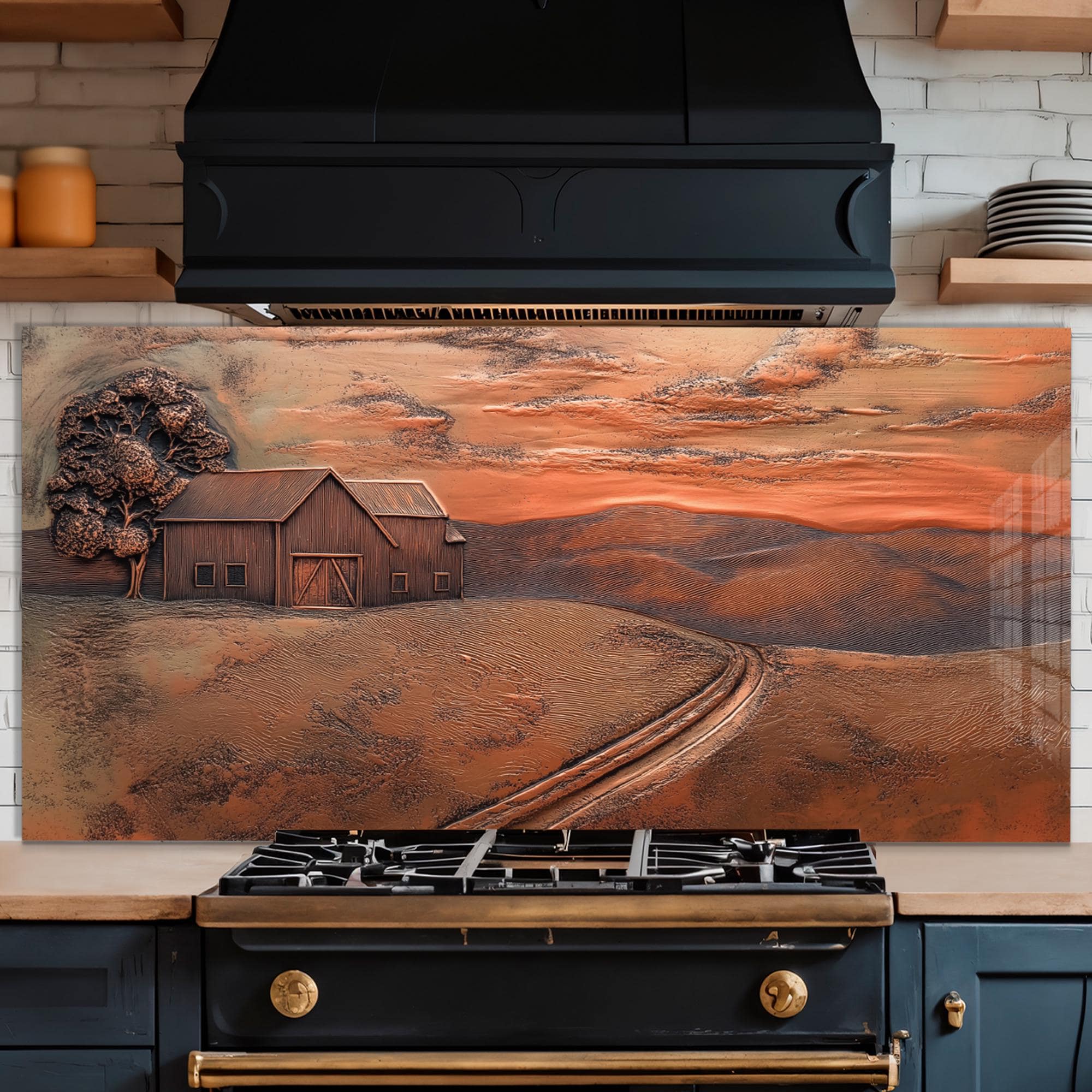 Farm Life View Glass Backsplash, Tempered Glass Splashback, Stove B...
