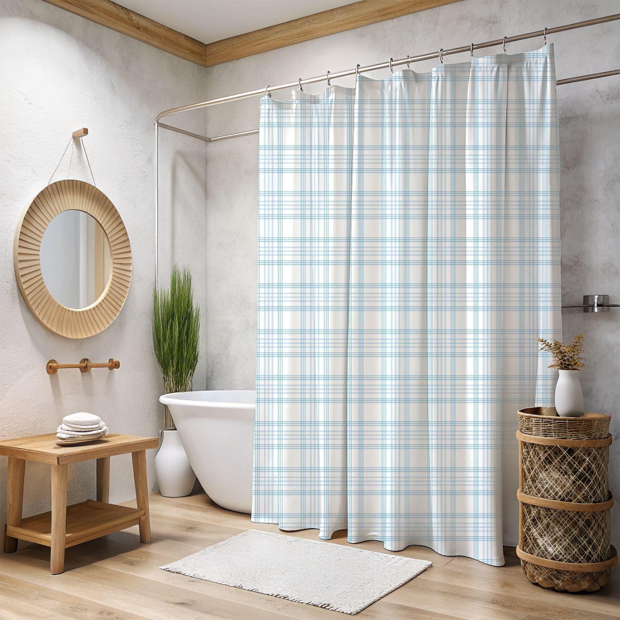 "Transform your bathroom into a stylish sanctuary with our blue plaid shower curtain. This long...
