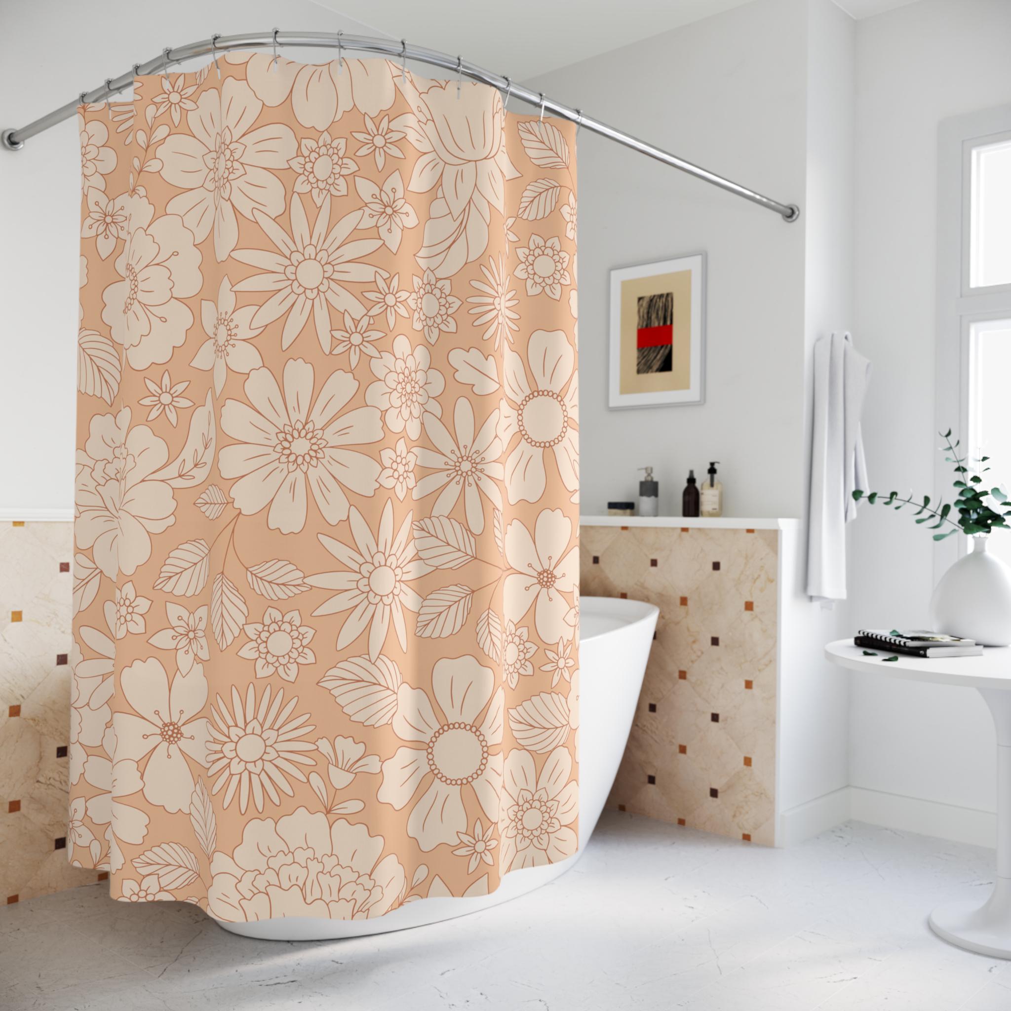 "Elevate your bathroom decor with our stunning Boho Floral Shower Curtain, a fusion of retro ch...