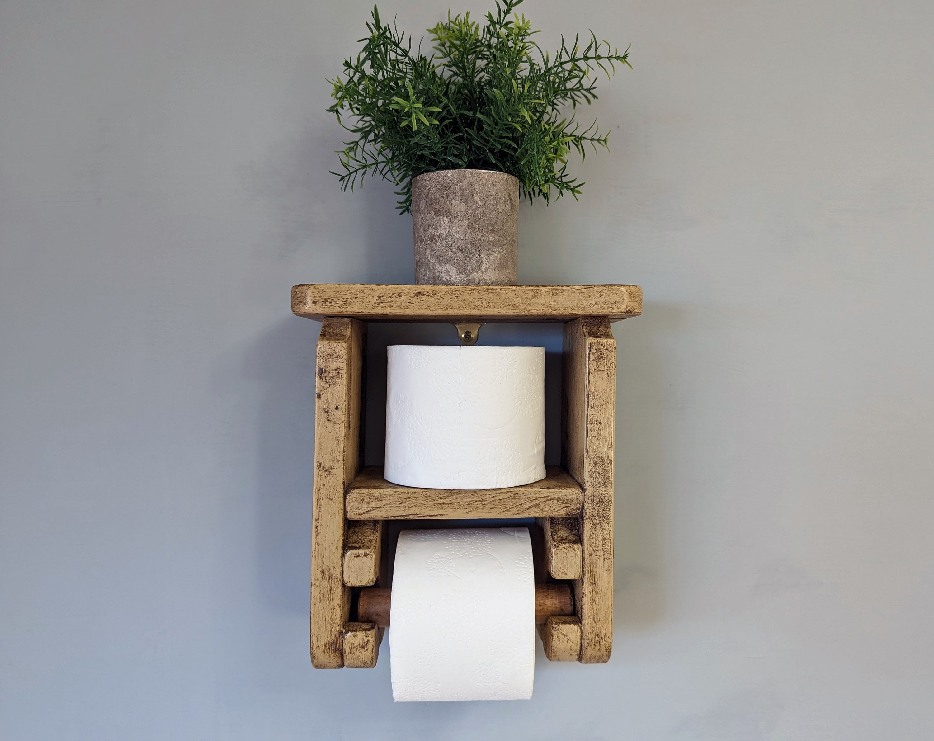 Toilet Roll Holder With Storage - Antique Pine - (0103)