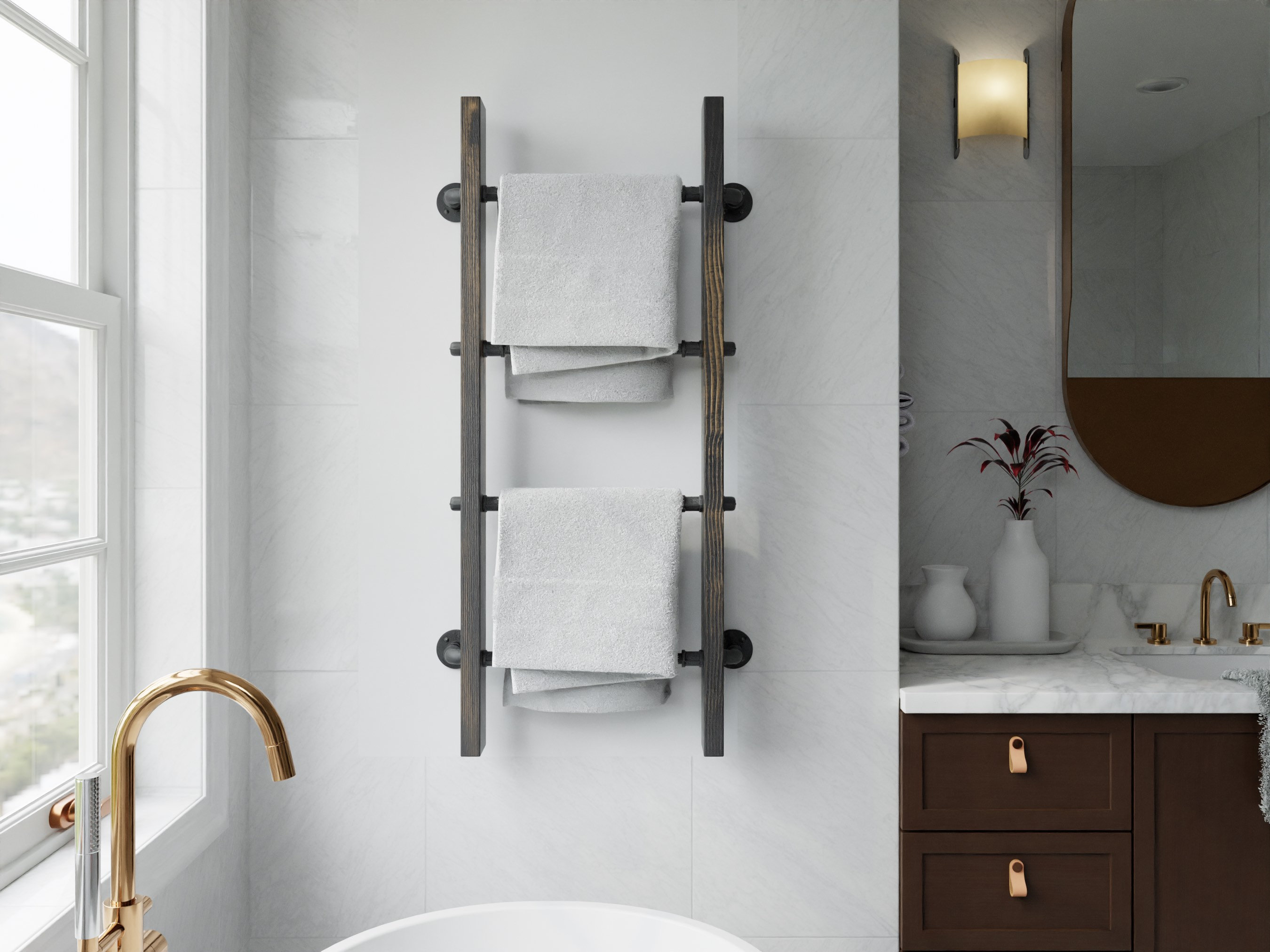 Upgrade your bathroom with a minimalist solid wood towel ladder designed for modern interiors. This ...