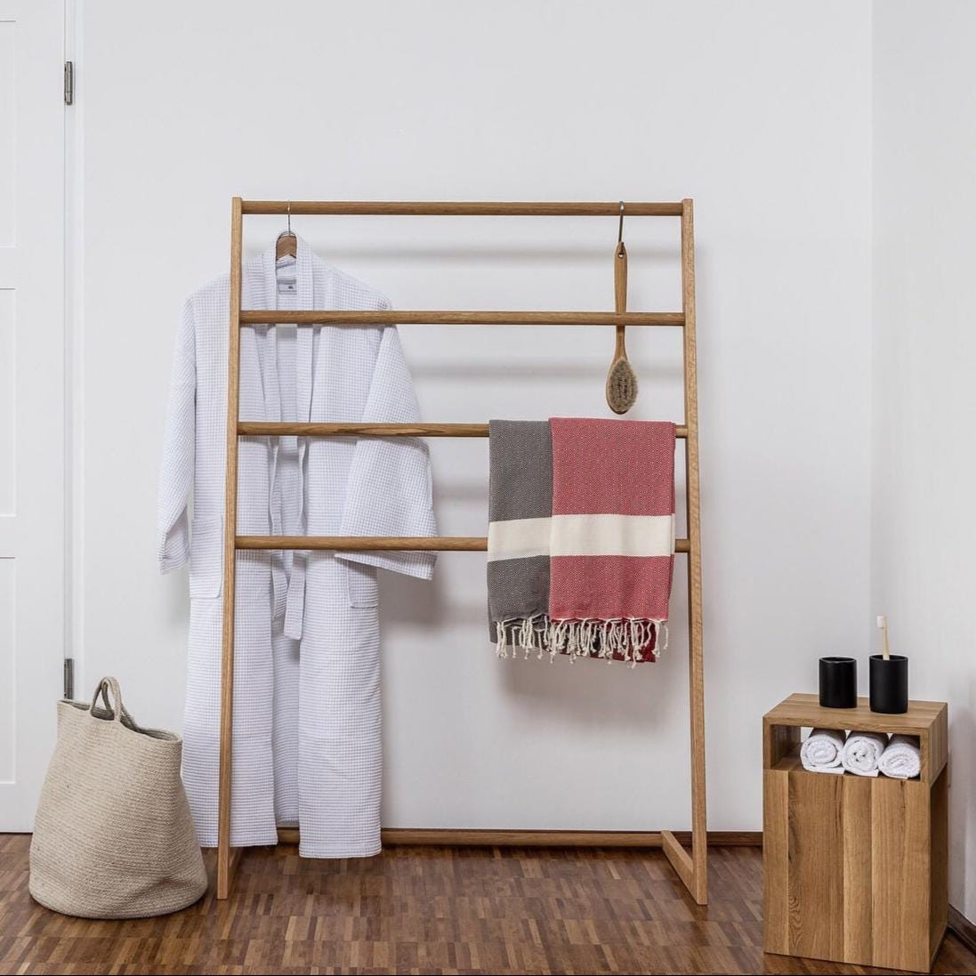 The freestanding MARTEN towel rack is a towel ladder made of solid oak. The elegant oak wood creates...