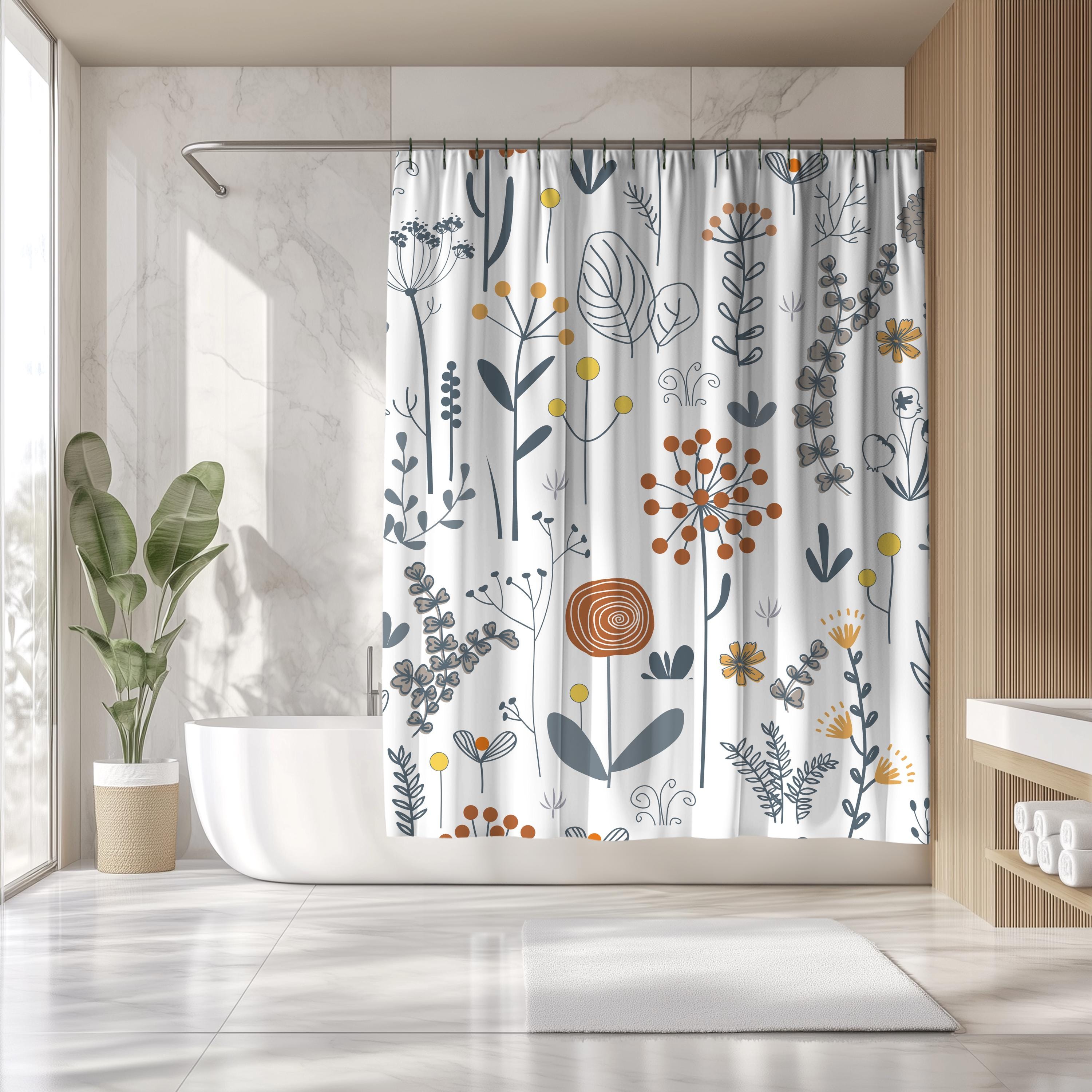 Minimalist Boho Shower Curtains Floral Print for Unique Bathroom De...
