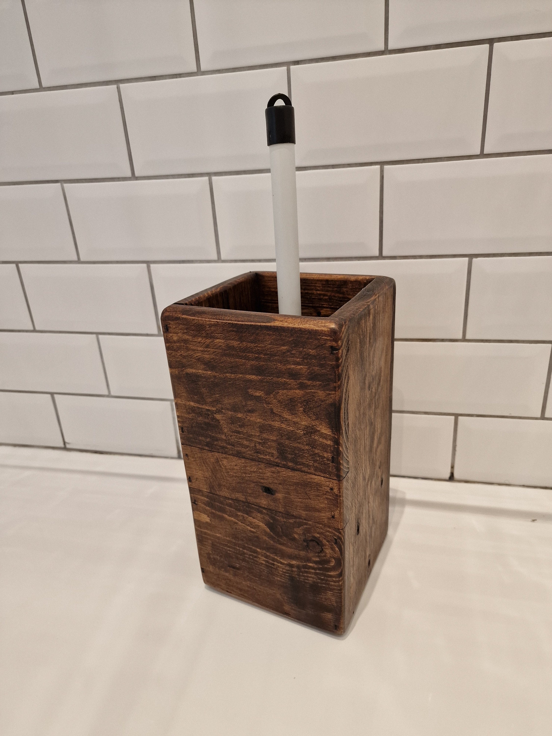 Handcrafted Rustic Reclaimed Wooden Toilet Brush Holder / Freestand...