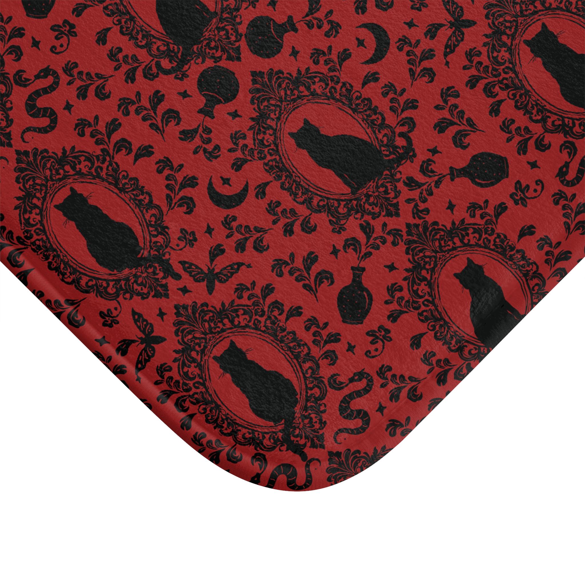 Baroque Cat Bath Mat - Black & Red, Witchy Gothic Victorian Bat...