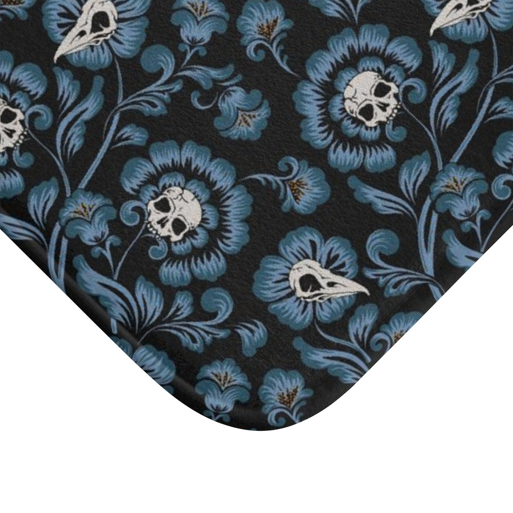 Victorian Skull Bath Mat, Gothic floral shower rug, Witchy botanica...