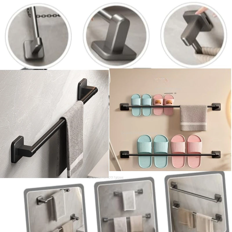 Towel rack, non perforated bathroom wall mounted towel rack, towel rack hanging rod, bathroom towel ...