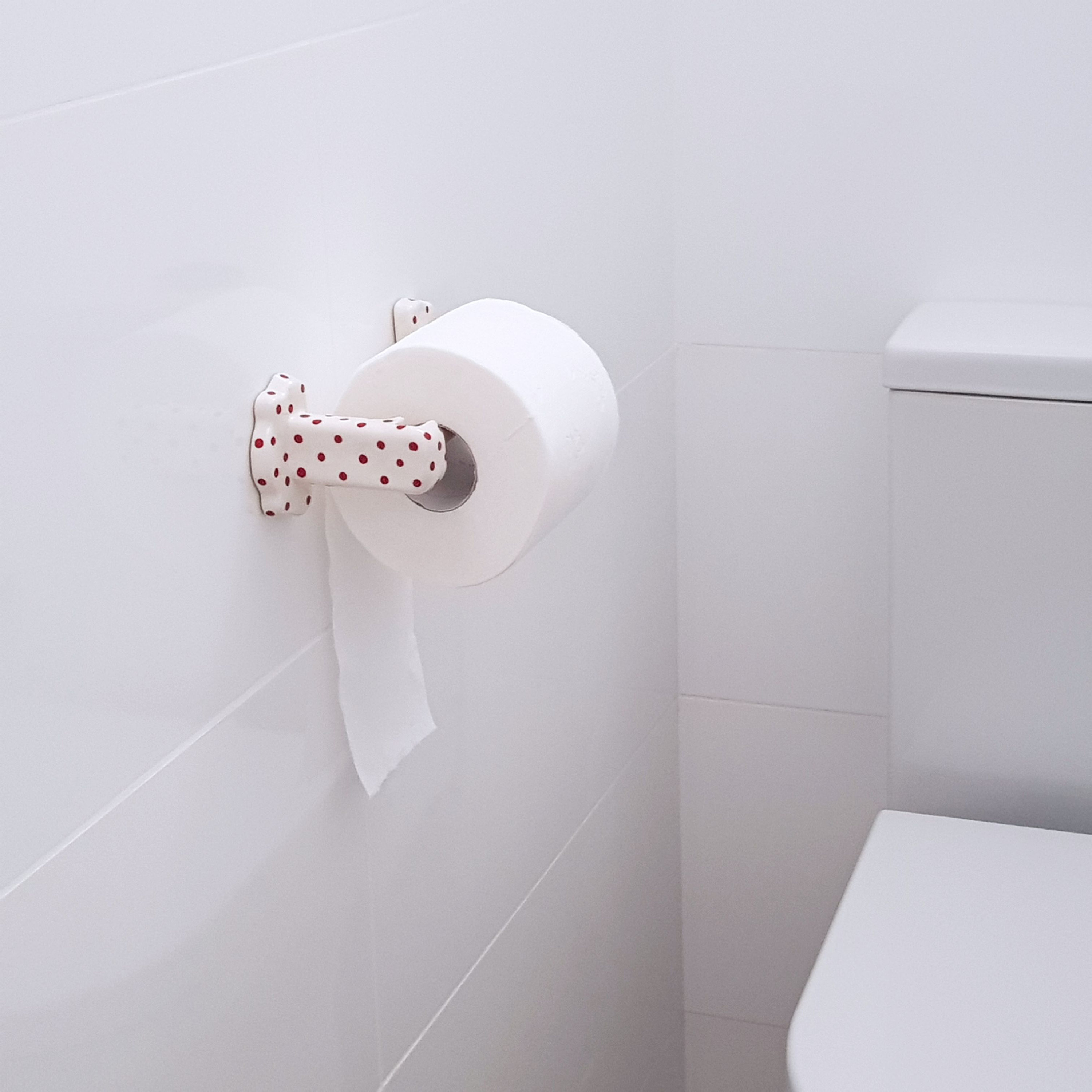 "Polka dot toilet paper holder made of ceramic and painted with red ddecorated with customer's ...
