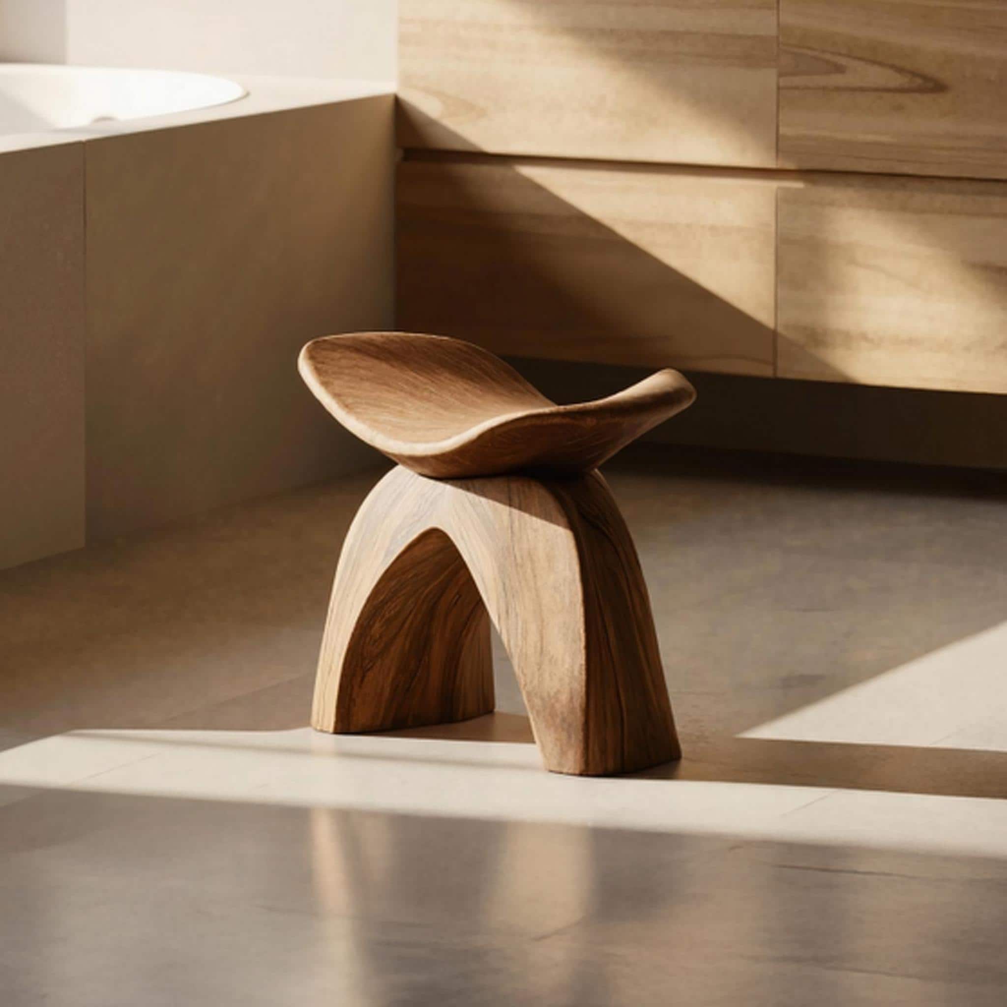 Rustic Wood Shower Seat for Indoor Use Solid Wood Shower Bath Spa F...