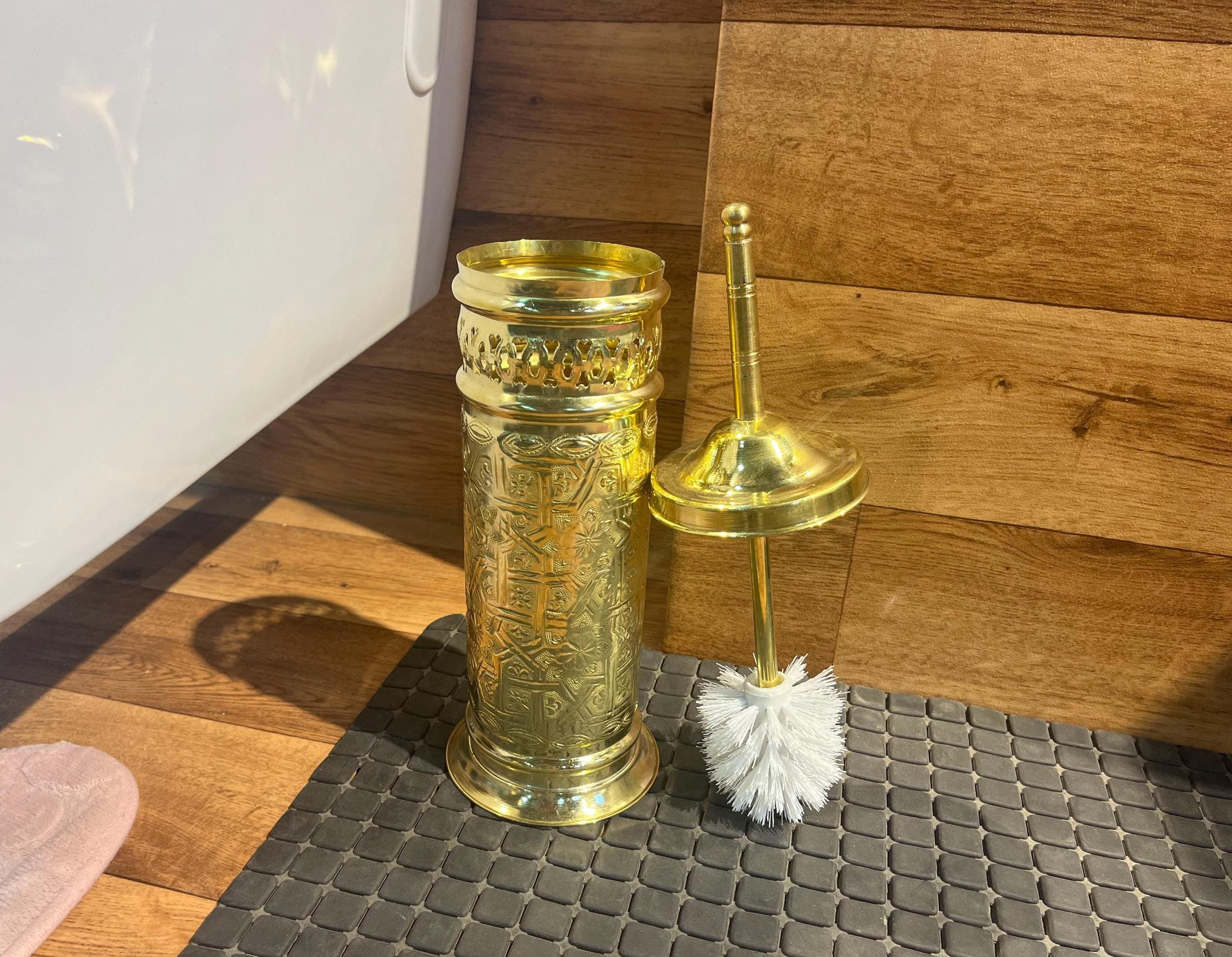 "This toilet brush holder is made of Solid brass, bathroom brush holder, 100% handmade. Our Unl...