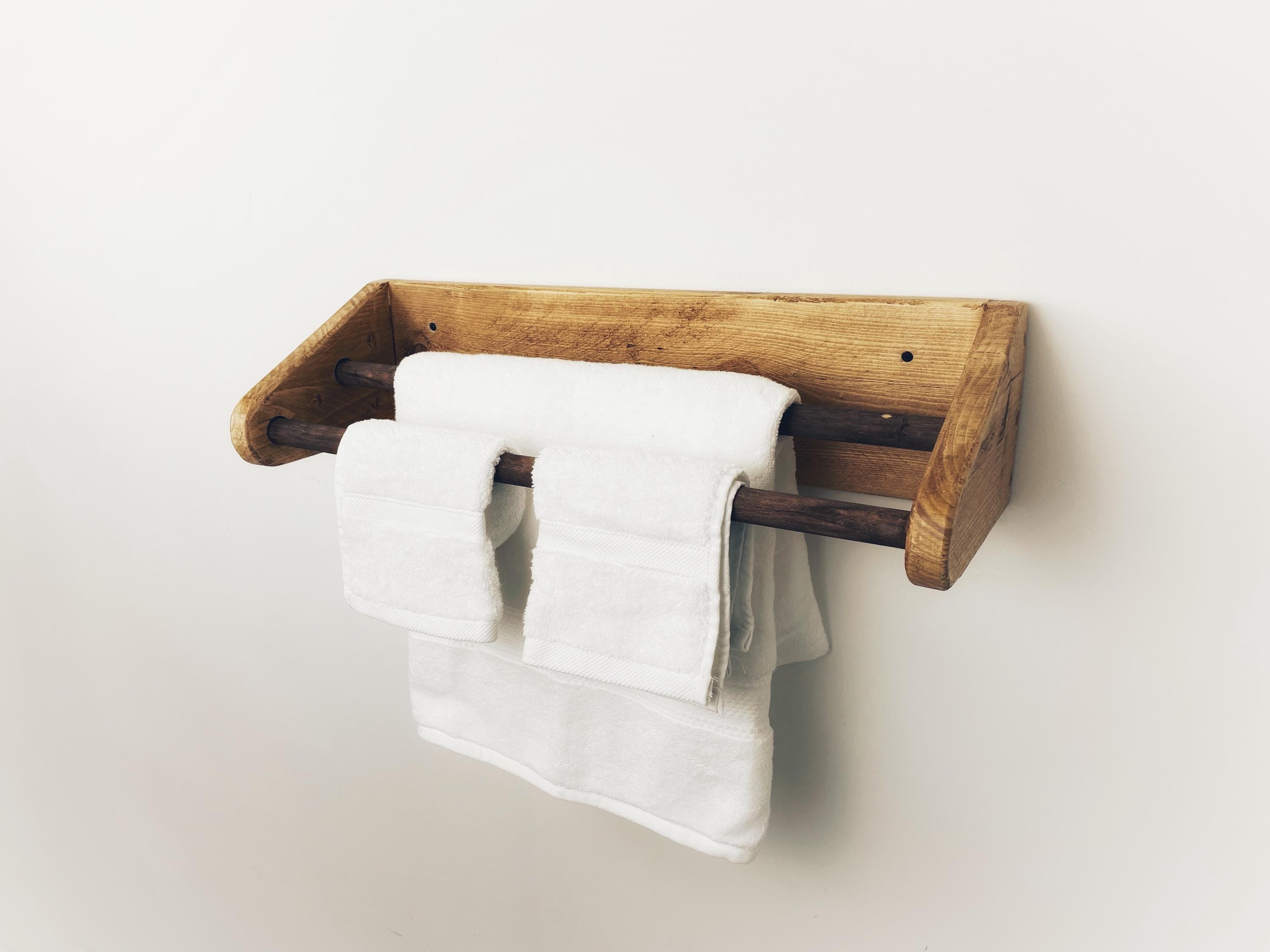 Rustic Wooden Wall Mounted Towel Rail, Farmhouse Bathroom Storage
