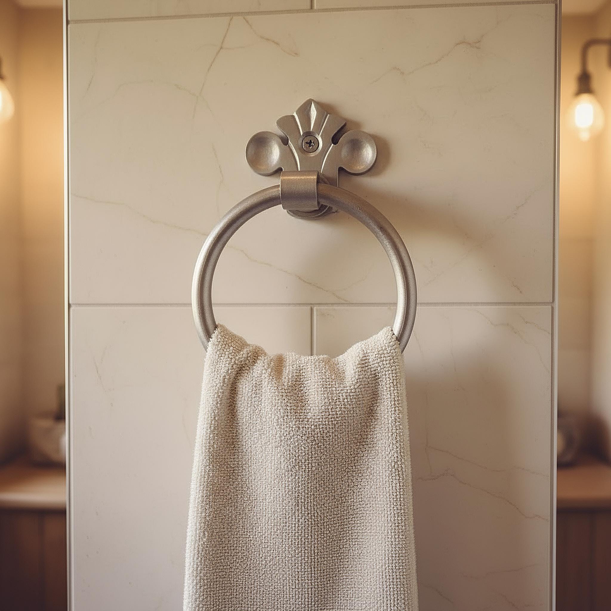 Towel ring towel rail holder, silver vintage towel bar cast iron Me...