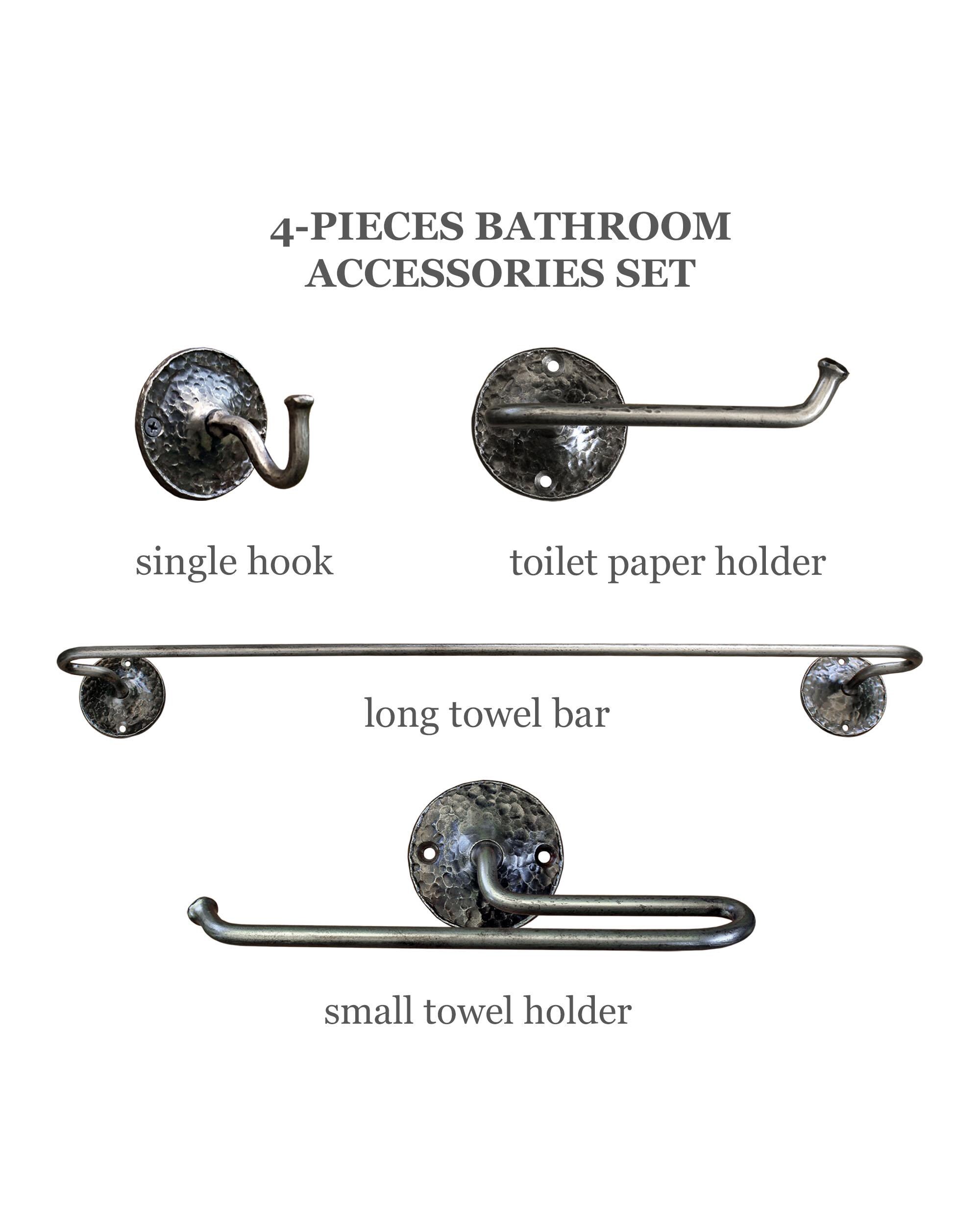 "Handmade iron bathroom hardware set of 4 pieces: 1 - Single robe hook 1 - Toilet paper roll ho...