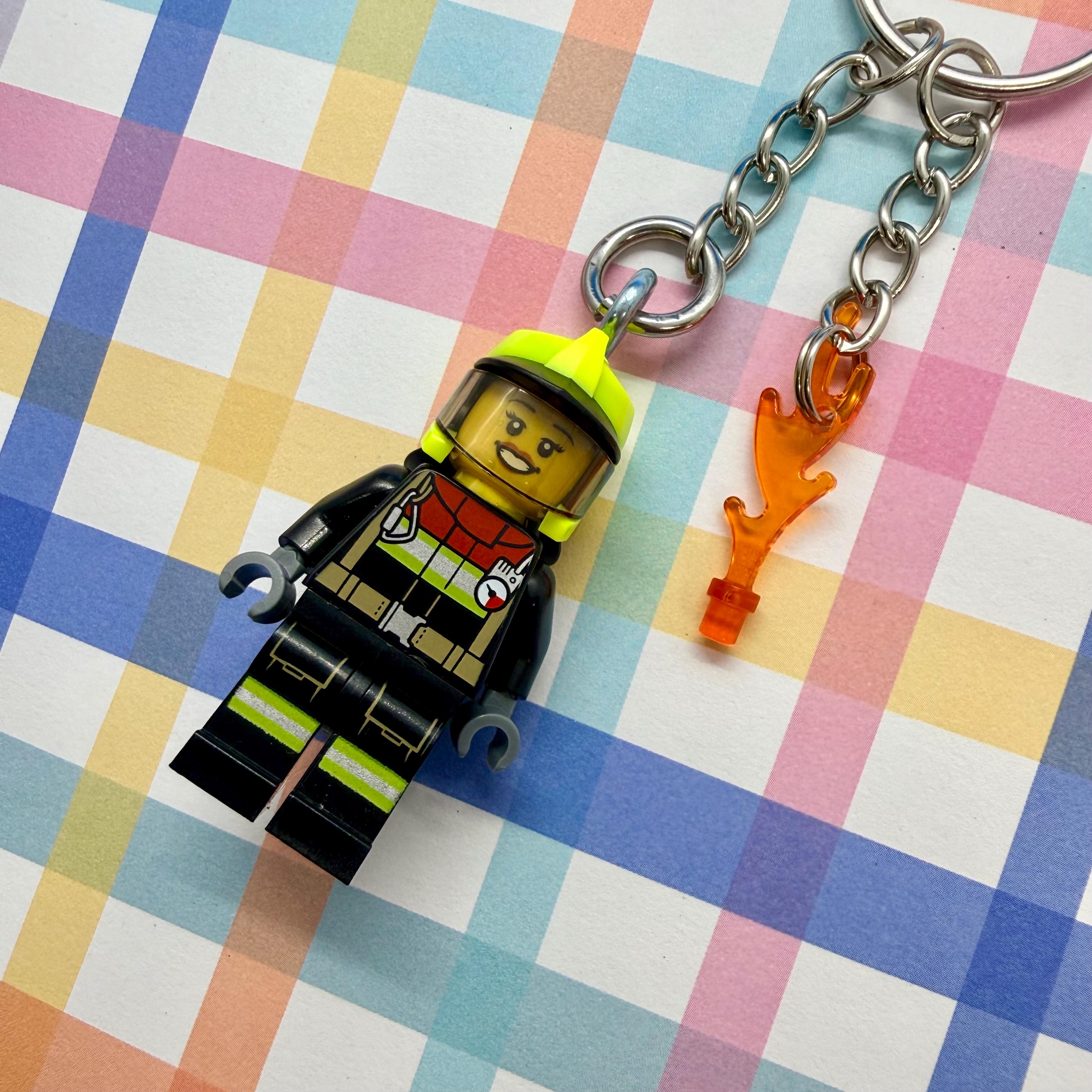 Firewoman Minifigure Keychain Measures approx 4cm tall by 1.5cm wide SHIPPING All items are shipped ...