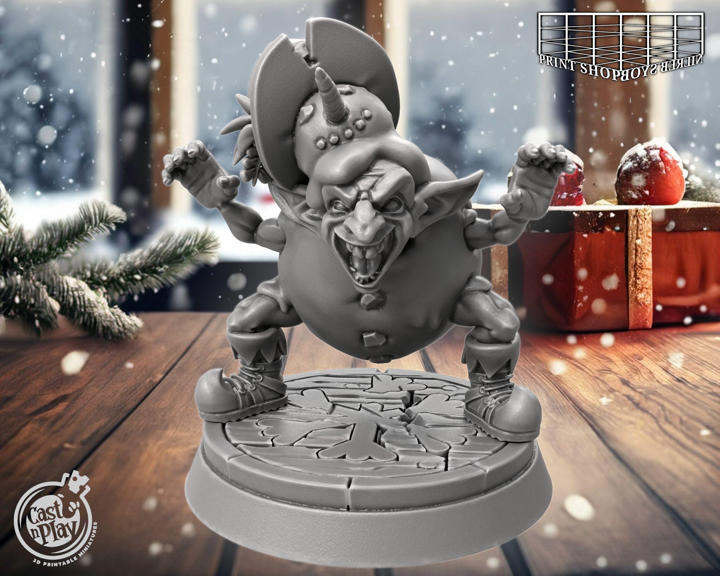 "This goblin in a snowman costume miniature was modeled for tabletop role-playing games such as...