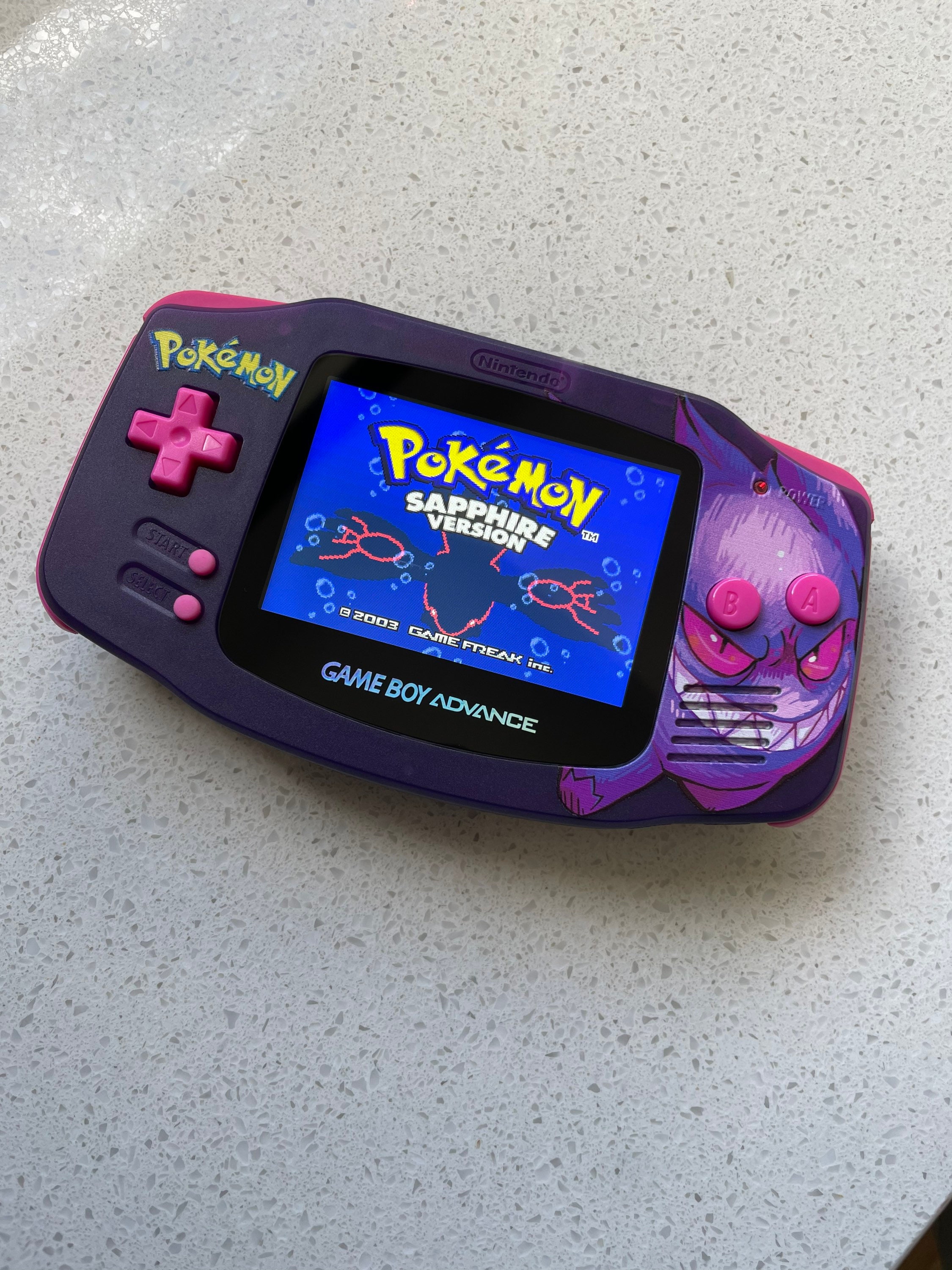 Nintendo Gameboy Advance Pokémon Gengar Backlit IPS V2 LCD Modified. Stunning high contrast c...