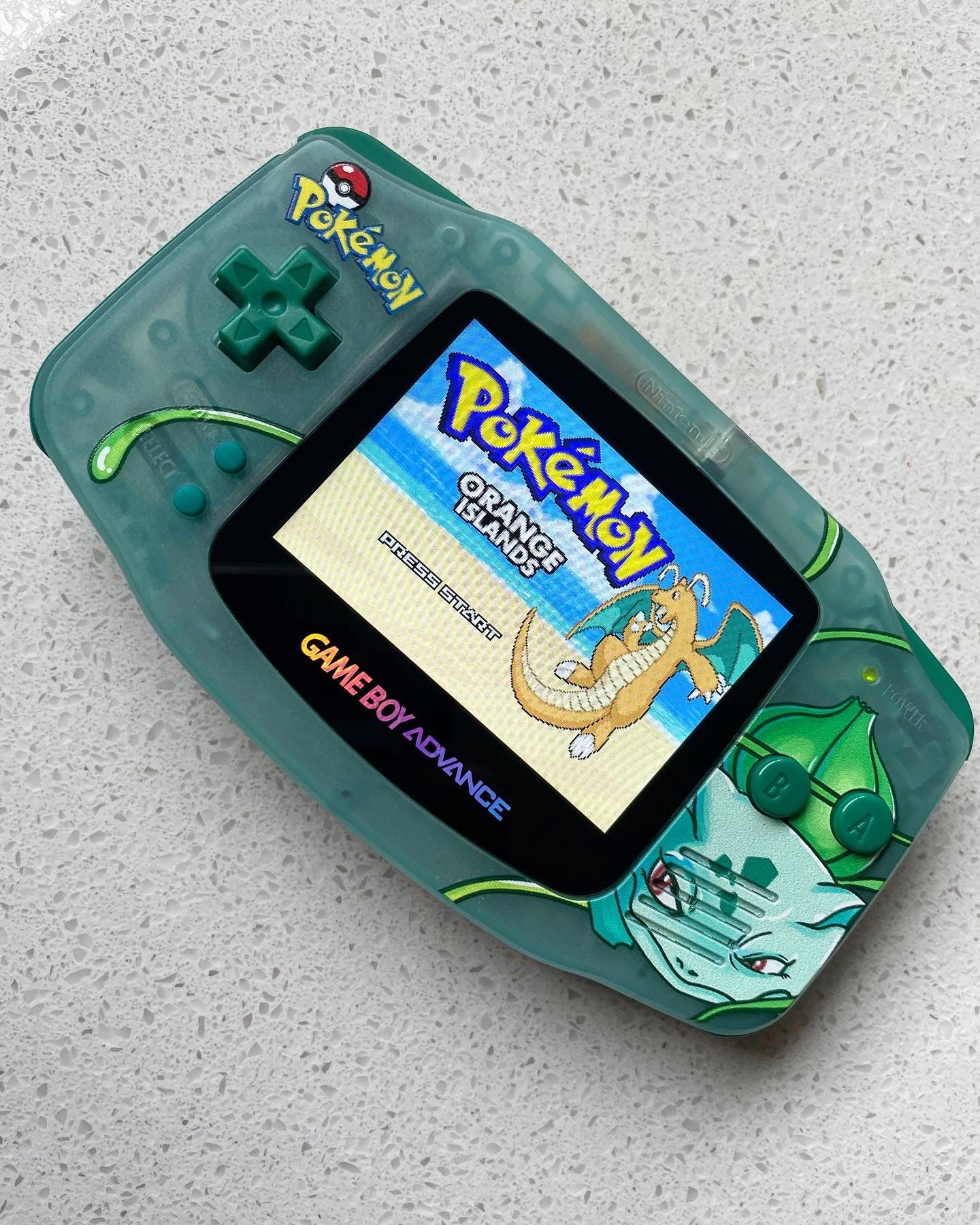 Nintendo Gameboy Advance Pokémon Bulbasaur * GLOW IN THE DARK SHELL * Backlit IPS V2 LCD Modi...