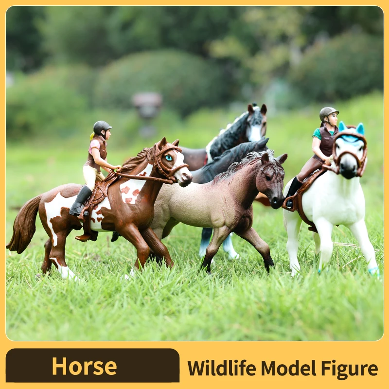 1Set Simulation Animals Horse racing Models Action Toy Figures Solid Collection Model Miniatures