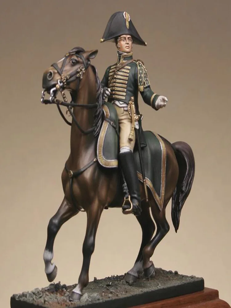 Resin soldier 1/32 54mm ancient warrior officer with horse Model Un...