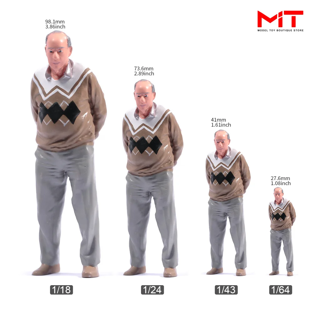 In Stock Painted Miniatures 1/87 1/64 1/43 1/24 1/18 An Big Belly Old Man Walking Figure Diorama Min...
