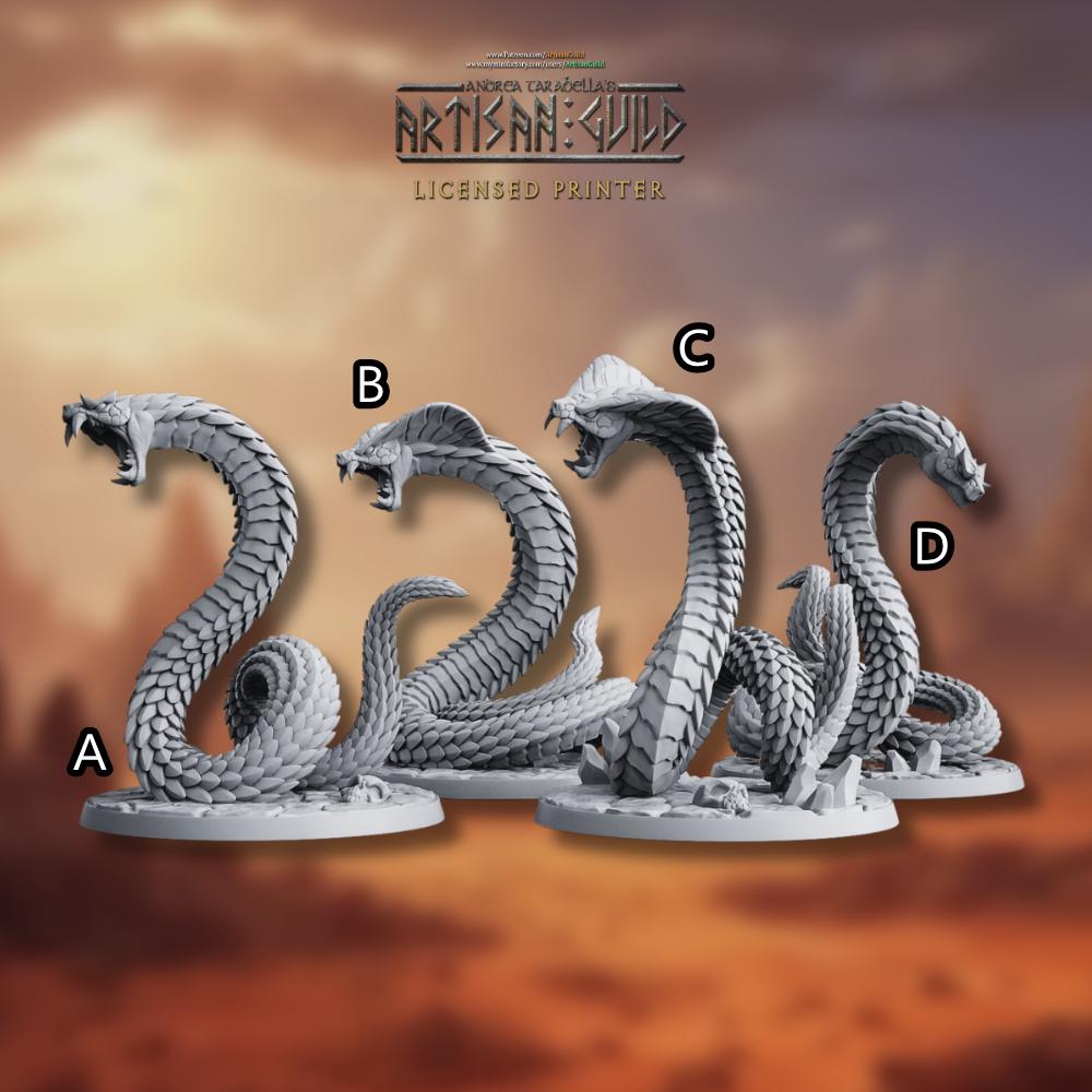 This set of four poisonous giant snakes, cobras or constrictors is perfect for your campaign in D&am...
