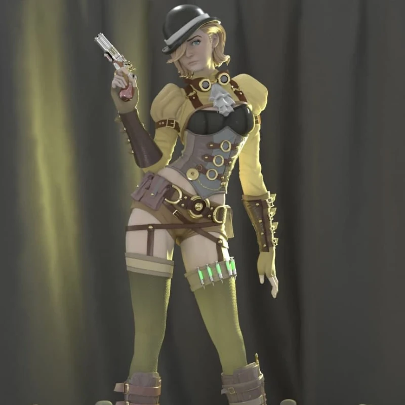 Steampunk Female Warrior DIY Toys 1/24 Ratio Full Height 90mm Resin...