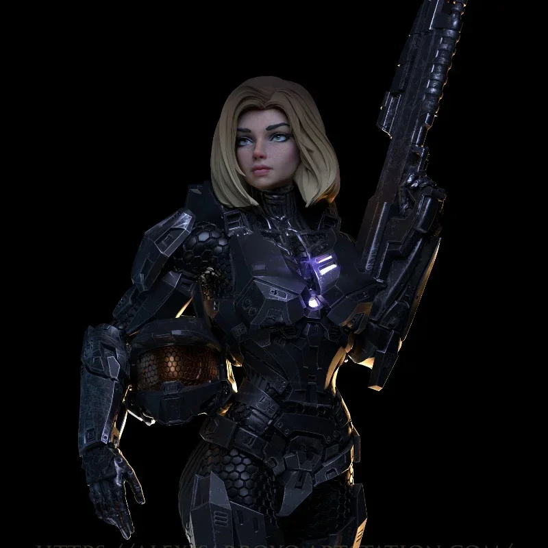 1/24 Scale 75mm Miniatures Wargame Resin Figures Model Kit Lady Halo Chief Sparta Unassembled and Un...