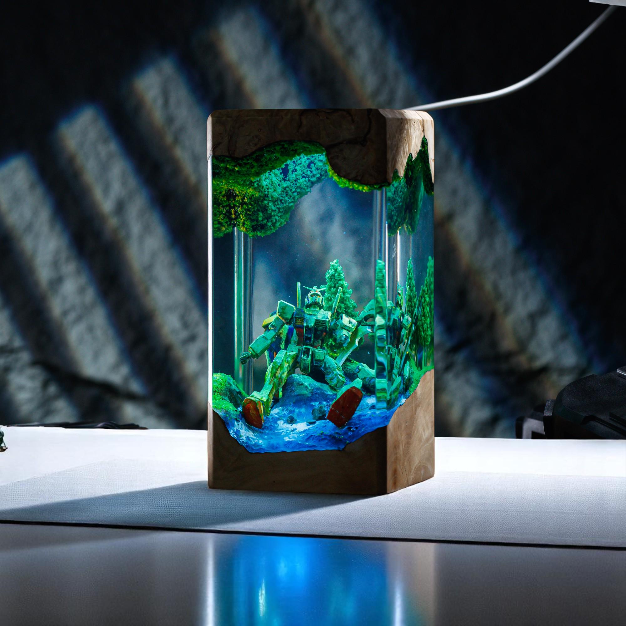 Gund.am Diorama Lamp Resin Epoxy, Custom Resin Lamp Wood, Robot Nig...