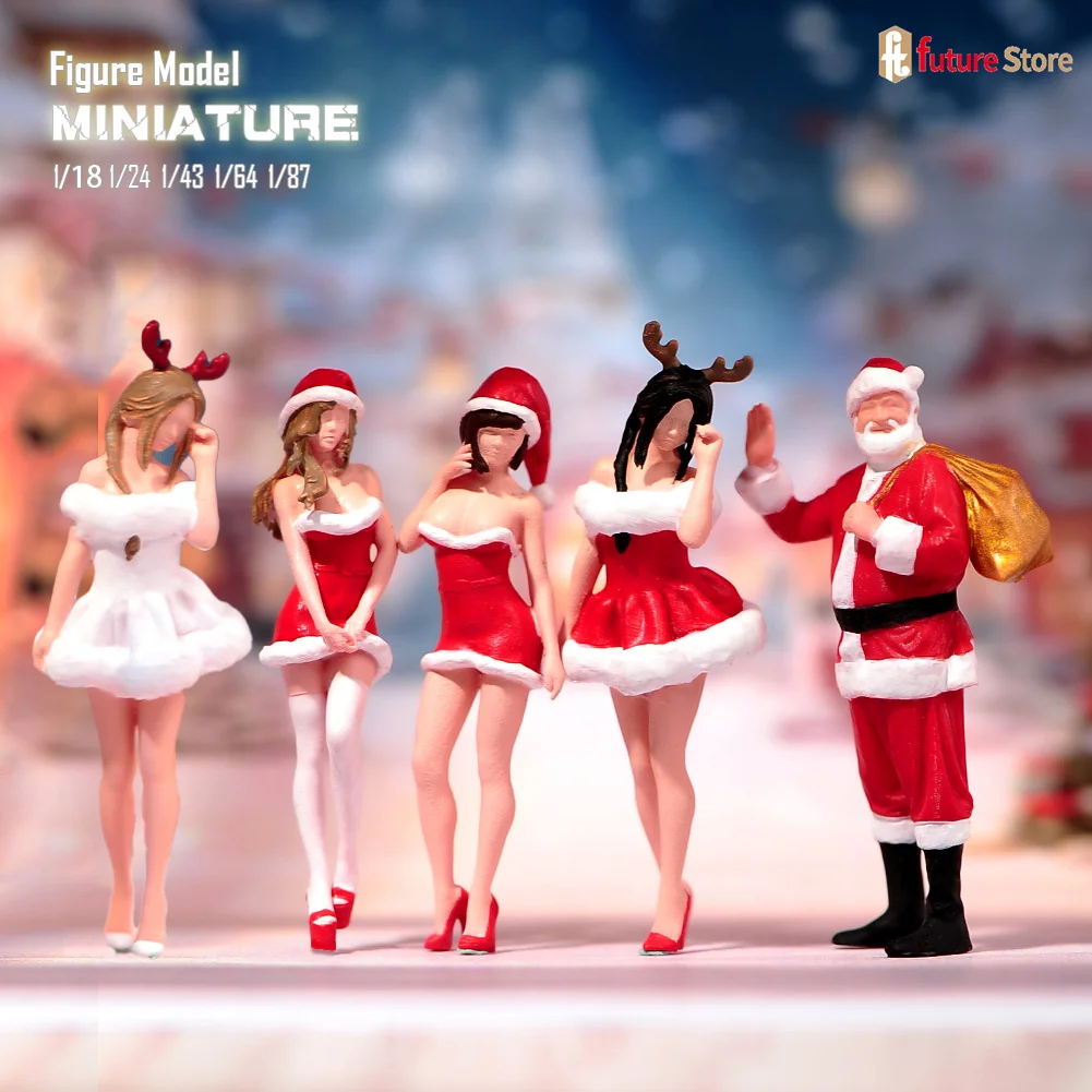 Miniatures 1/87 1/64 1/43 1/24 1/18 Christmas Girls Outfit Santa Claus Figure Mini Figurines Doll Mo...