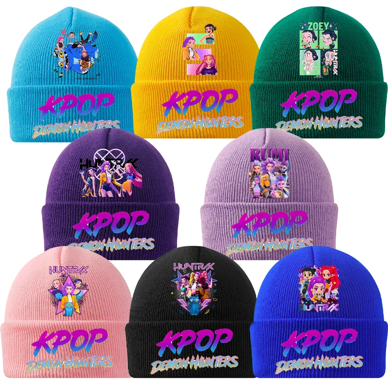 KPop Demon Hunters Baby Casuals Knit Hat Outdoor Infant Cap Cartoon Winter Warm Beanie Letter Wool B...